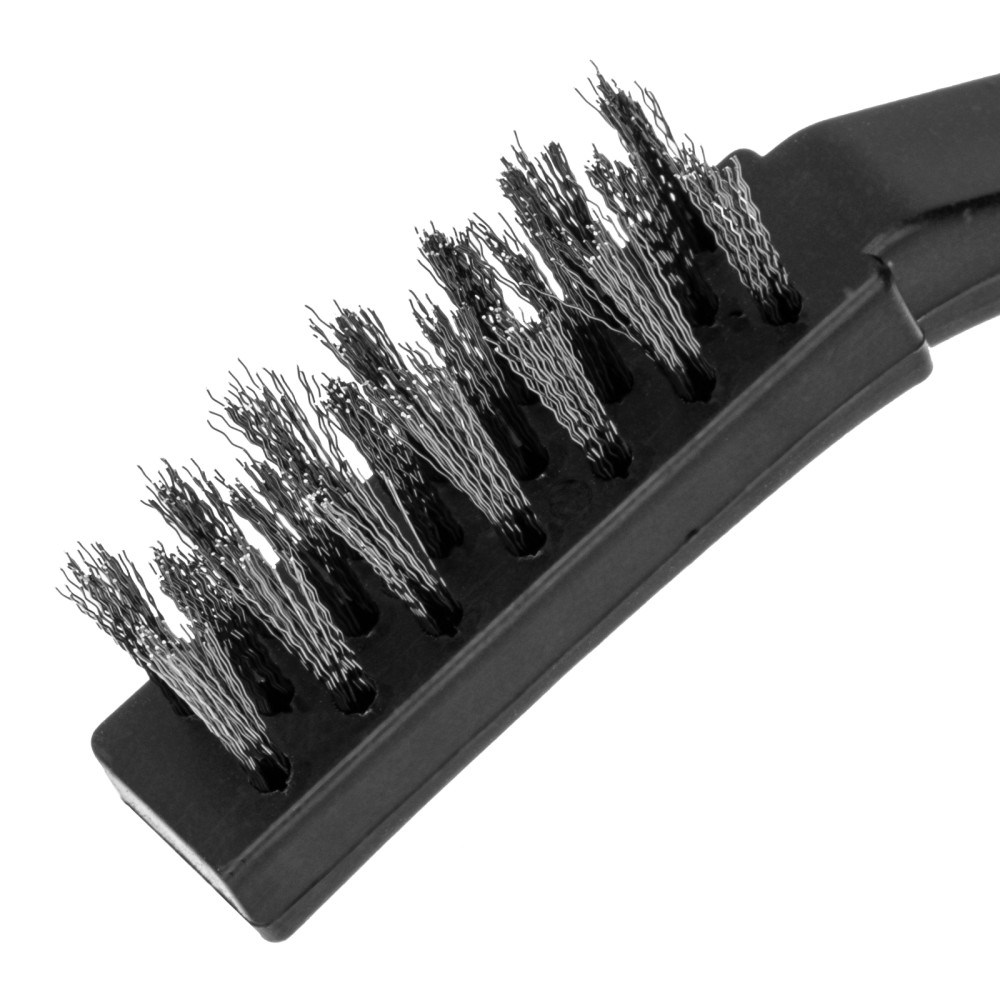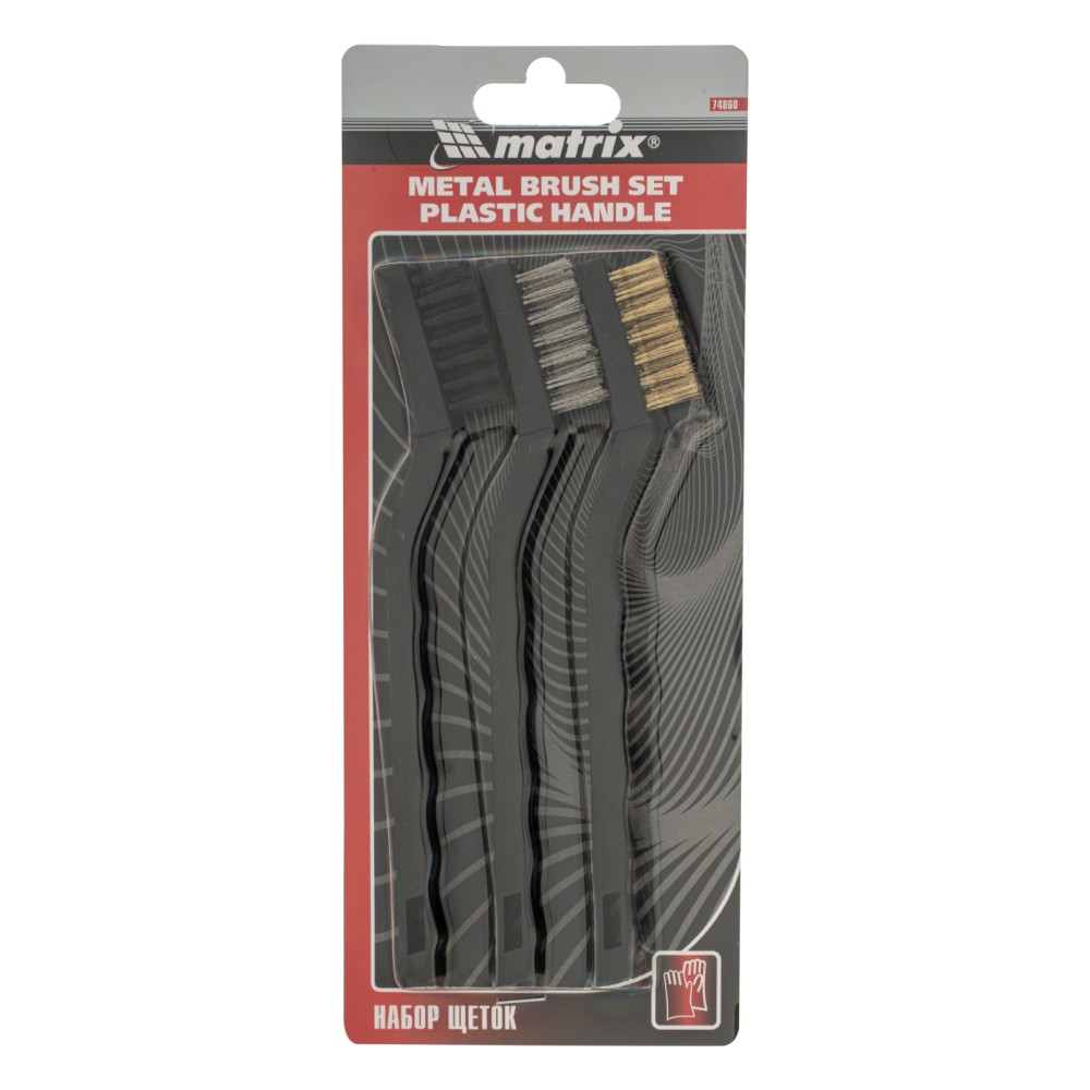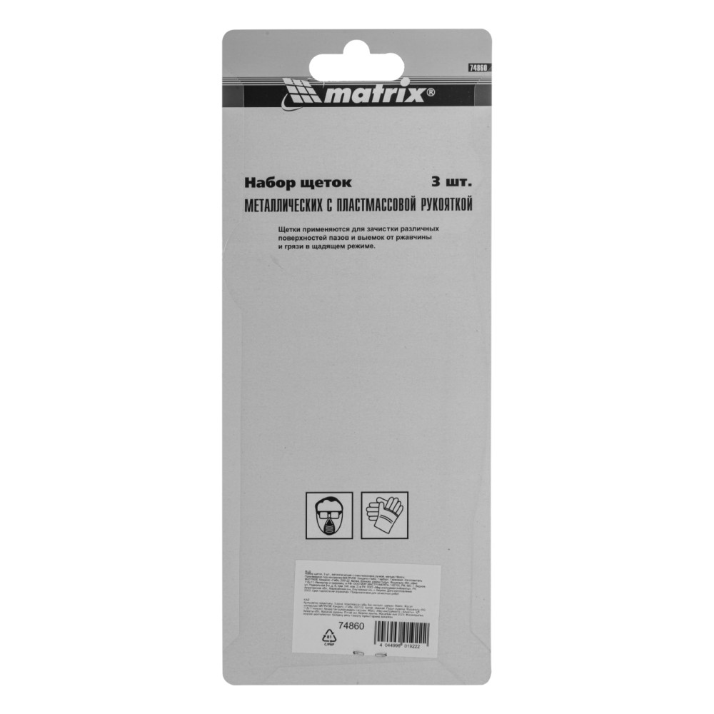 Набор малых щеток Matrix 74860 с пластмассовыми ручками предназначен для различных видов обработки — стальные удаляют ржавчину, загрязнения и старую краску с металлических и других поверхностей, а нейлоновая браширует и мягко очищает деревянные изделия. Щетки имеют удлиненные ручки, а длина рабочих частей составляет 34 мм, поэтому они оптимальны для работы на небольших участках и в труднодоступных местах. Набор пригодится во время проведения ремонта, кузовных работ, а также будет полезен в быту.ПреимуществаВысокий ресурс — витая стальная проволока устойчива к деформации, латунированное покрытие защищает щетину от коррозии.Надежность — проволока прочно закреплена в основании и не выпадает во время работы, пластиковые корпусы не рассыхаются и служат долго.Комфортная работа — эргономичные рукоятки удобно ложатся в руку.Продуманная упаковка — набор поставляется в блистере с подвесом, удобном для размещения на стенде.