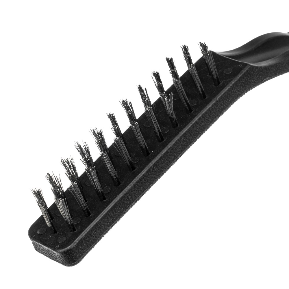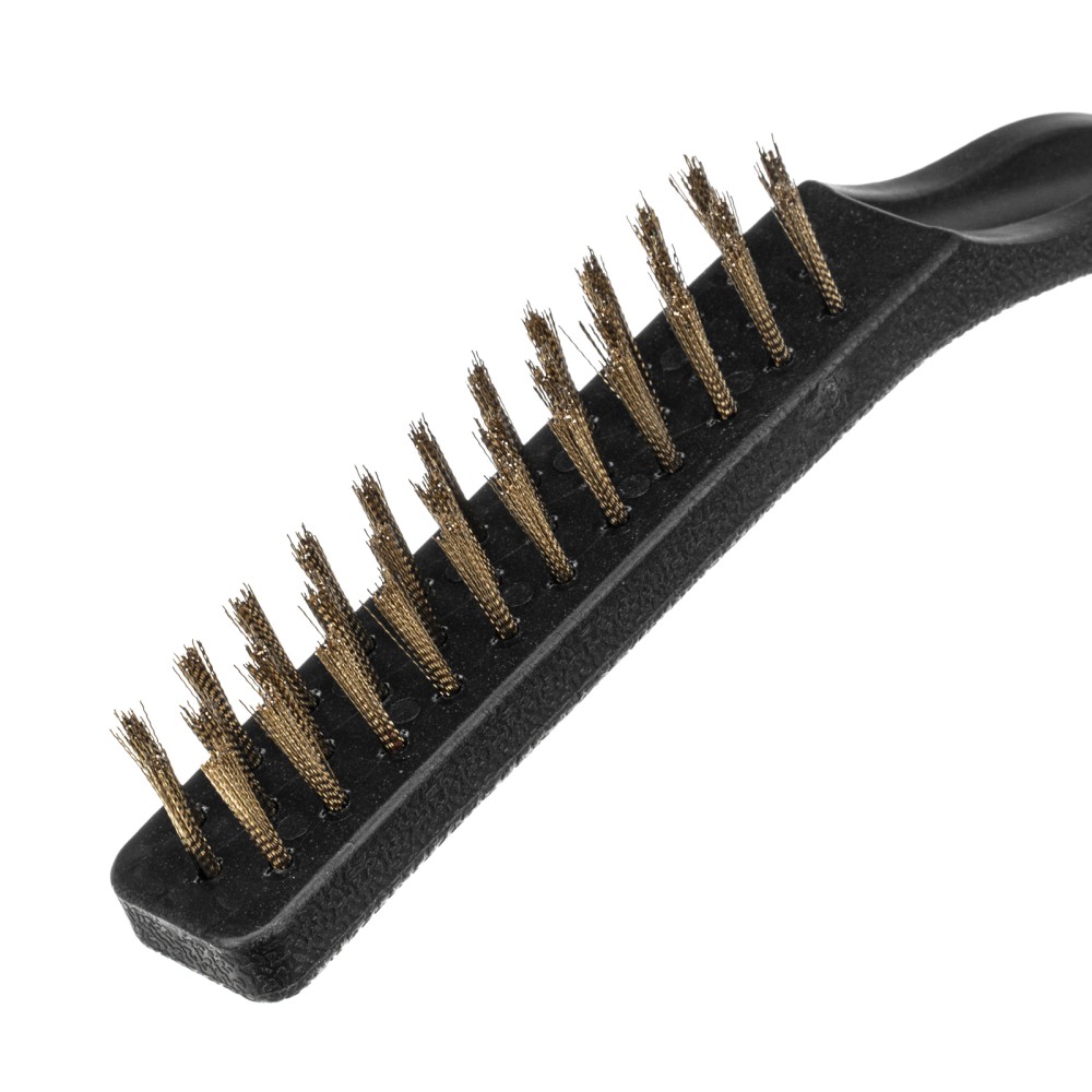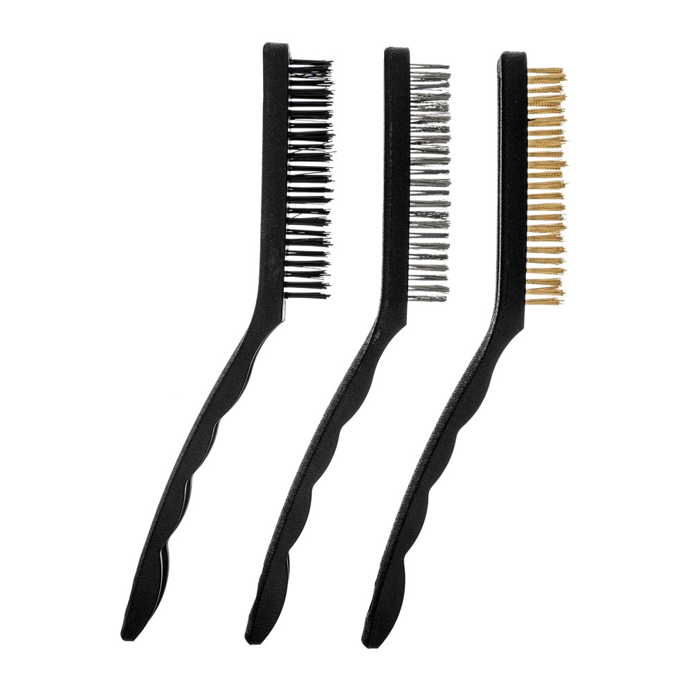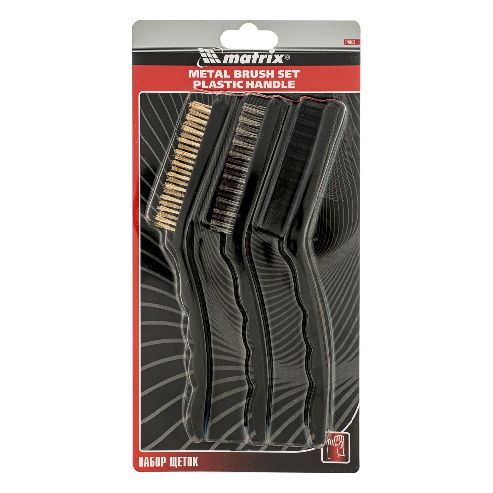 Набор из 3 больших щеток Matrix 74863 с пластмассовыми ручками предназначен для различных видов обработки — стальные удаляют ржавчину, загрязнения и старую краску с металлических и других поверхностей, а нейлоновая браширует и мягко очищает деревянные изделия. Набор пригодится во время ремонта, проведения кузовных работ, а также будет полезен в быту.ПреимуществаВысокий ресурс — витая стальная проволока устойчива к деформации, латунированное покрытие защищает щетину от коррозии.Надежность — проволока прочно закреплена в основании и не выпадает во время работы, пластиковые корпусы не рассыхаются и служат долго.Комфортная работа — эргономичные рукоятки удобно ложатся в руку.Продуманная упаковка — набор поставляется в блистере с подвесом, удобном для размещения на стенде.