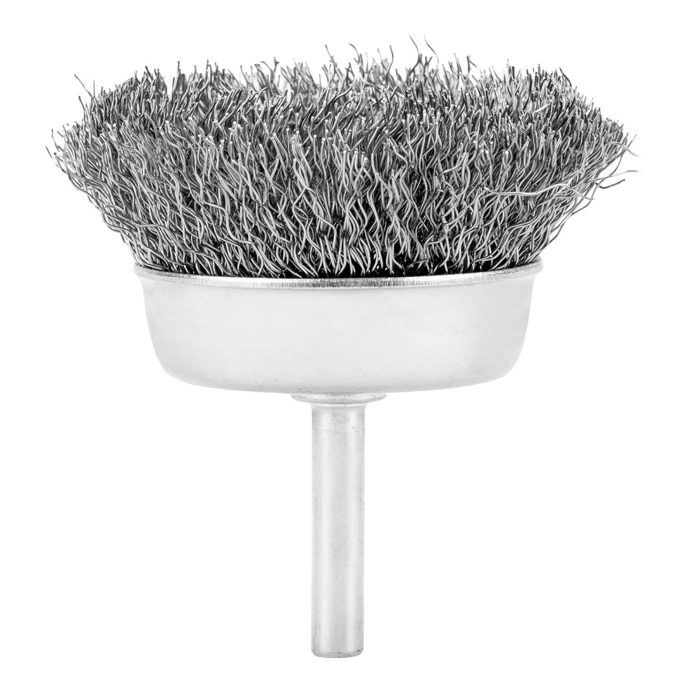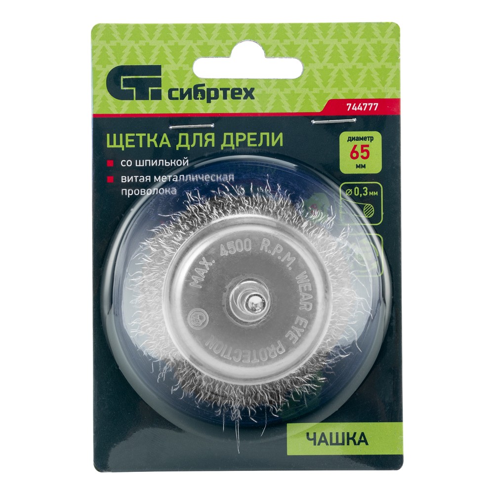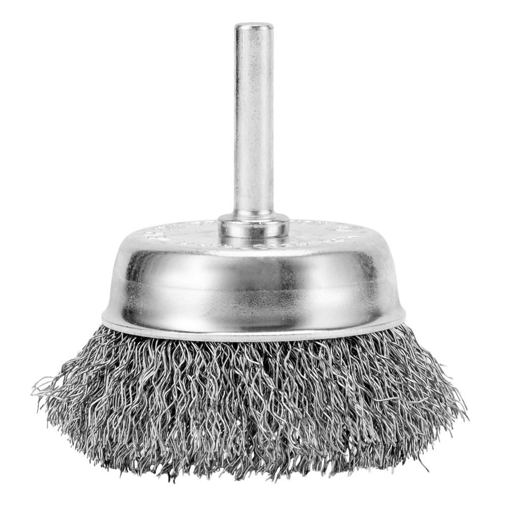 Щетка для дрели «чашка» Сибртех 744777 диаметром 65 мм, со шпилькой и щетиной из витой проволоки 0,3 мм, предназначена для щадящей обработки значительных по площади металлических, деревянных и пластиковых поверхностей — удаления загрязнений, остатков краски и лака, придания шероховатости или подчеркивания структуры материала. Насадка с хвостовиком 6 мм устанавливается в патрон электродрели, поддерживающей работу со скоростью 4500 об/мин. Во время работы с инструментом обязательно использование защитной одежды и обуви, очков, респиратора и наушников. Щетку применяют в профессиональной сфере и в быту.ПреимуществаДолговечность — щетина изготовлена из высококачественной стальной проволоки.Устойчивость к деформации — витая проволока принимает изначальную форму после снятия нагрузок.Высокая производительность — щетка имеет форму чашки, что увеличивает площадь прилегания щетины к обрабатываемой поверхности.Защита от коррозии — корпус оцинкован, щетина покрыта техническим маслом.