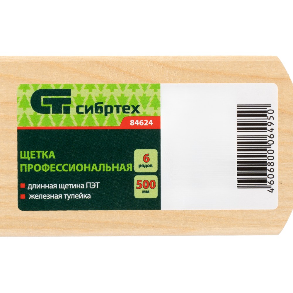Профессиональная щетка для пола Сибртех 84624 длиной 500 мм, с длинной шестирядной щетиной и железной тулейкой, без черенка, предназначена для уборки жилых, технических и хозяйственных помещений, а также дорожек, лестниц и тротуаров. Благодаря жесткой щетине может использоваться вместо игольчатого валика для выравнивания поверхности и удаления воздушных пузырьков во время монтажа бетонных стяжек и наливных полов. Удобна для уборки участков большой площади. Черенок приобретается отдельно, совместимые модели 68432, 68443, 68414.ПреимуществаЭффективная уборка — ворс длиной 66 мм, расположенный пучками в 6 рядов, не оставляет мусор на поверхности.Прочность и высокий ресурс — колодка изготовлена из древесины твердых лиственных пород, щетина из износостойкого синтетического материала крепко зафиксирована в основании.Надежность — металлическая тулейка не сломается при интенсивном использовании.Комфортная работа — наклонная тулейка обеспечивает удобное положение черенка.