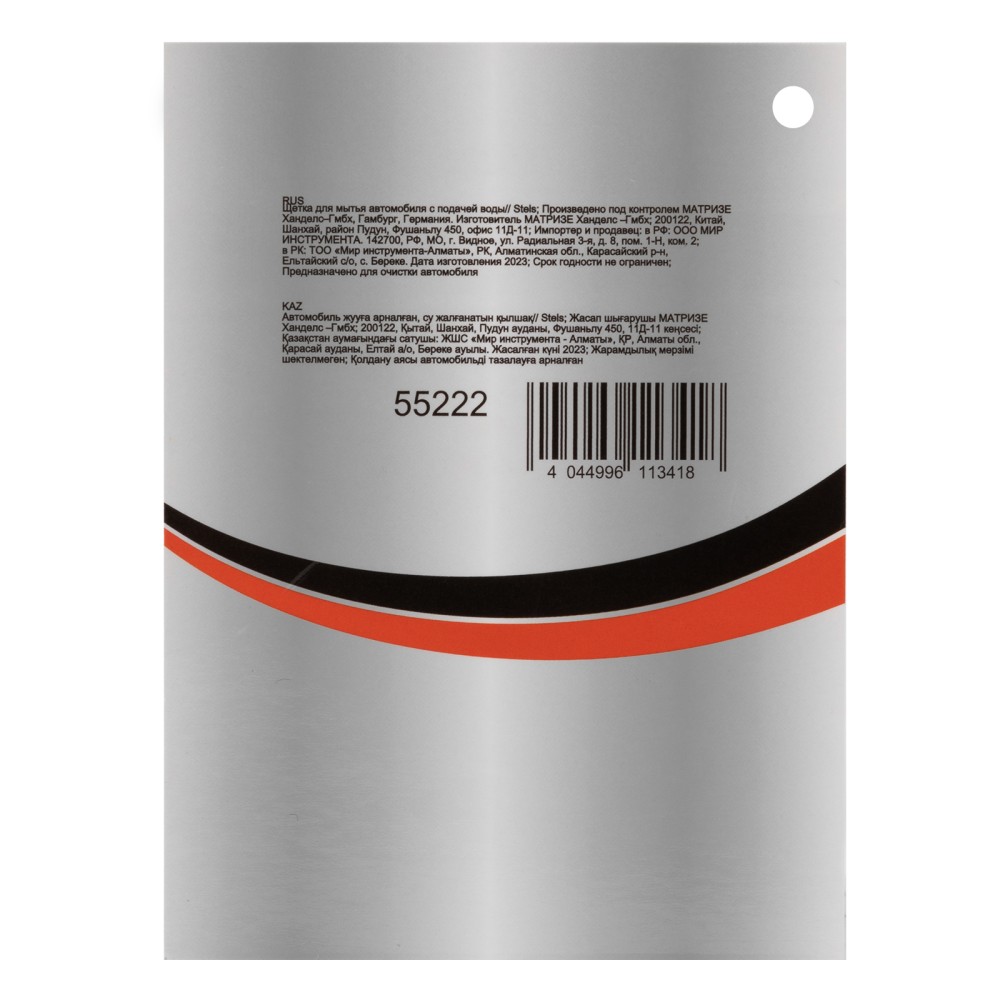 Щетка Stels 55222 длиной 31 см, с возможностью подачи воды, используется для мытья автомобиля. Имеет штуцер размером 1″ для подключения водопроводного шланга. Щетина из прочного полипропилена устойчива к истиранию, поэтому щетка прослужит долго. Длина рабочей части составляет 16 см.ПреимуществаЗабота о лакокрасочном покрытии — густая мягкая щетина успешно справляется с загрязнениями, не царапая кузов.Эффективность — при подключении к источнику водоснабжения вода подается на рабочую часть щетки и смывает частицы грязи с поверхности кузова.Малый вес 229 г — мытье автомобиля не вызывает ощущение усталости.