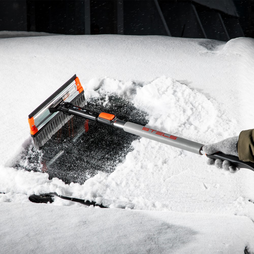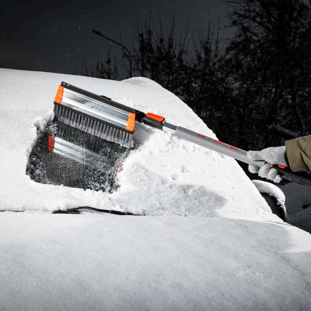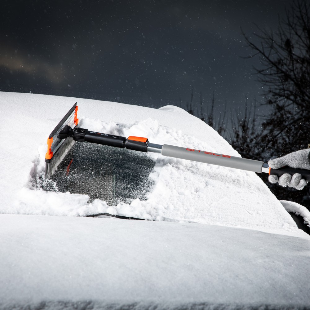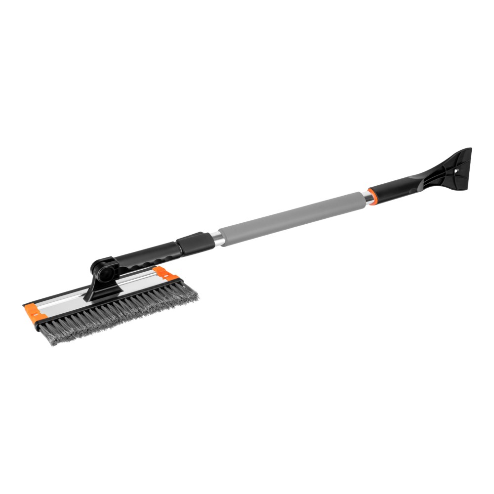 Телескопическая щетка-сметка для снега Stels 55299 со скребком и водосгоном, с поворотной головой, используется для очищения автомобиля от снега, наледи и воды. Рабочая длина регулируется в диапазоне 92-133 см. Благодаря рабочей части длиной 28 см с плотной распушенной щетиной щетка эффективно и аккуратно удаляет слой снега с кузова, не царапая его. Скребок шириной 10 см быстро удаляет наледь, а зубья дробят толстую корку льда. Щетка со скребком пригодится владельцам автомашин.ПреимуществаТелескопическая рукоятка — вы с легкостью достанете до крыши автомобиля.5 положений поворотной головы — получится очистить даже труднодоступные участки.Мягкий водосгон — стекла эффективно очищаются от воды и подтаявшего снега.Прочность — голова имеет металлическое основание, рукоятка изготовлена из алюминиевого сплава.Морозостойкость — щетка-сметка может использоваться при температуре до -40 ℃.Комфортное использование — благодаря мягкой неопреновой накладке рукоятку удобно держать в руках даже в сильные морозы.Разборная конструкция — щетка удобна в использовании и не занимает много места в зоне хранения.