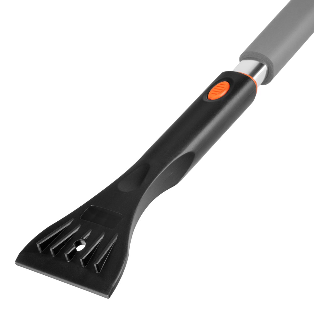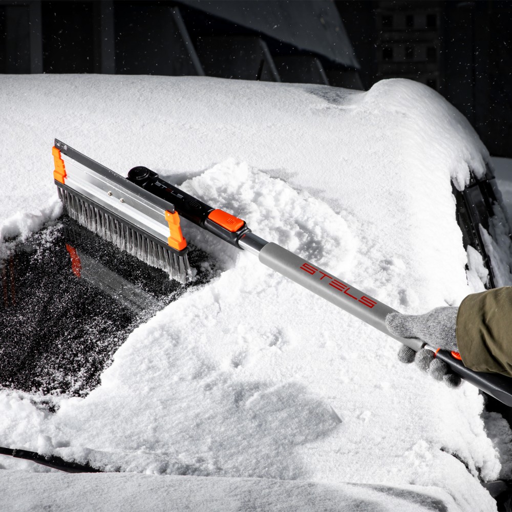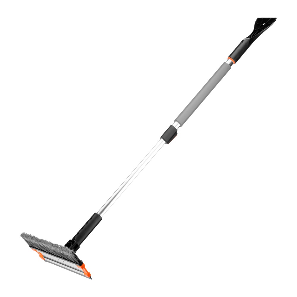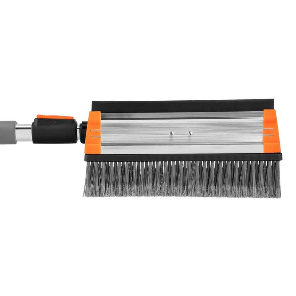 Телескопическая щетка-сметка для снега Stels 55299 со скребком и водосгоном, с поворотной головой, используется для очищения автомобиля от снега, наледи и воды. Рабочая длина регулируется в диапазоне 92-133 см. Благодаря рабочей части длиной 28 см с плотной распушенной щетиной щетка эффективно и аккуратно удаляет слой снега с кузова, не царапая его. Скребок шириной 10 см быстро удаляет наледь, а зубья дробят толстую корку льда. Щетка со скребком пригодится владельцам автомашин.ПреимуществаТелескопическая рукоятка — вы с легкостью достанете до крыши автомобиля.5 положений поворотной головы — получится очистить даже труднодоступные участки.Мягкий водосгон — стекла эффективно очищаются от воды и подтаявшего снега.Прочность — голова имеет металлическое основание, рукоятка изготовлена из алюминиевого сплава.Морозостойкость — щетка-сметка может использоваться при температуре до -40 ℃.Комфортное использование — благодаря мягкой неопреновой накладке рукоятку удобно держать в руках даже в сильные морозы.Разборная конструкция — щетка удобна в использовании и не занимает много места в зоне хранения.