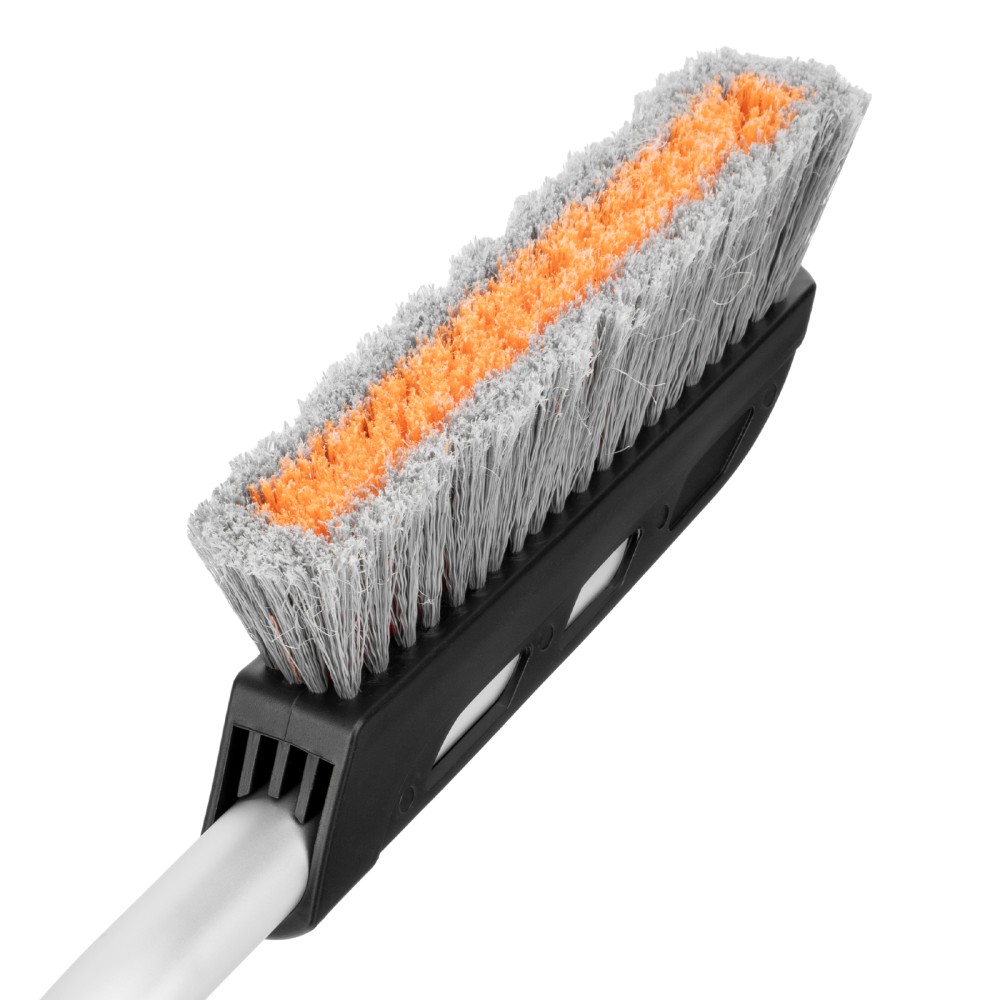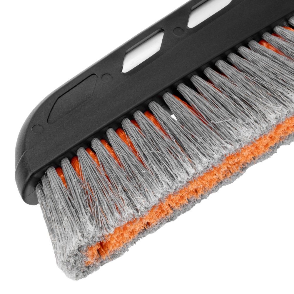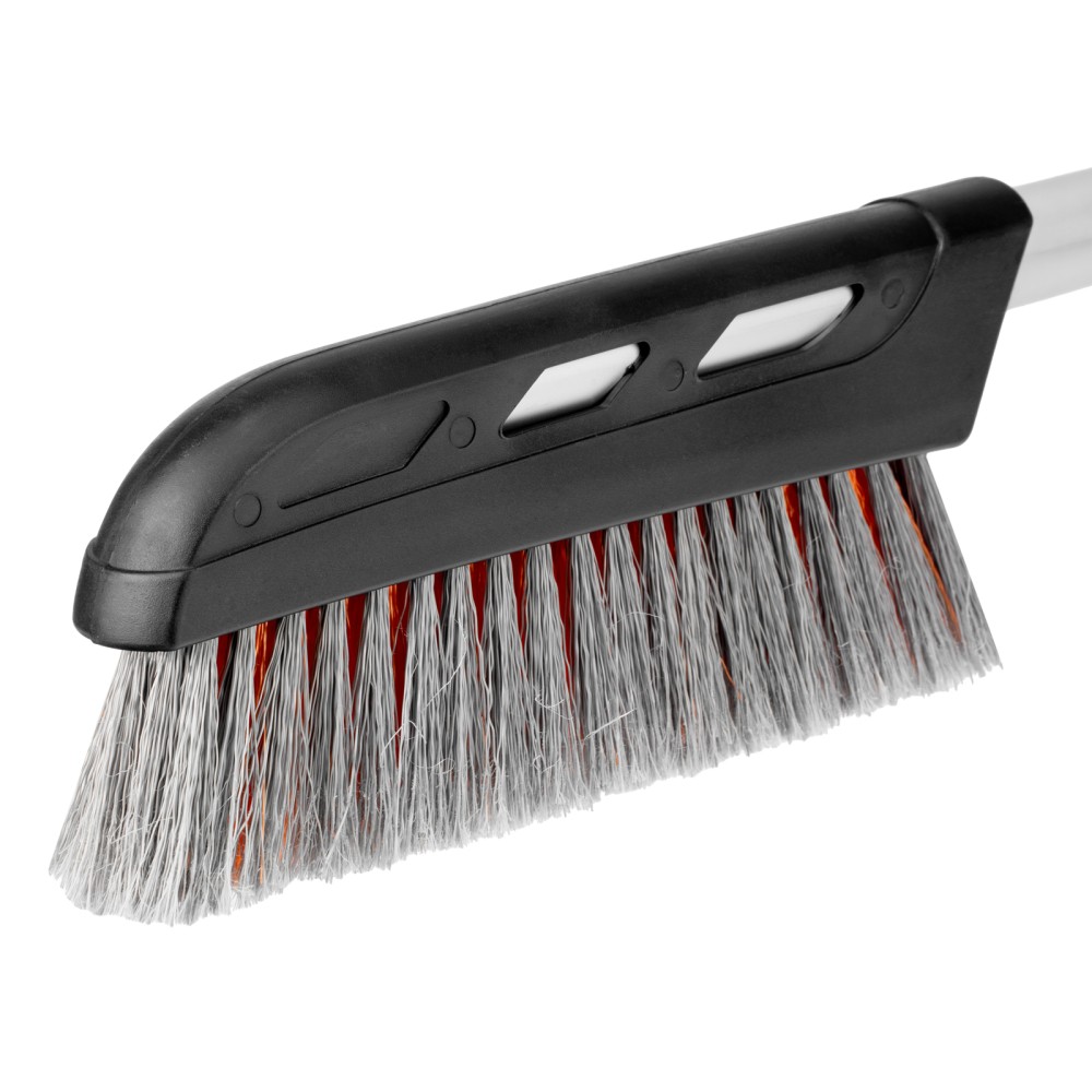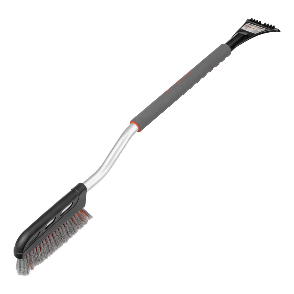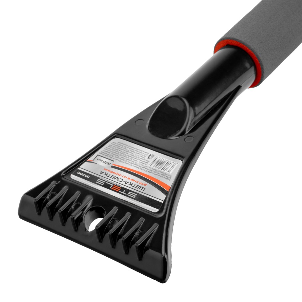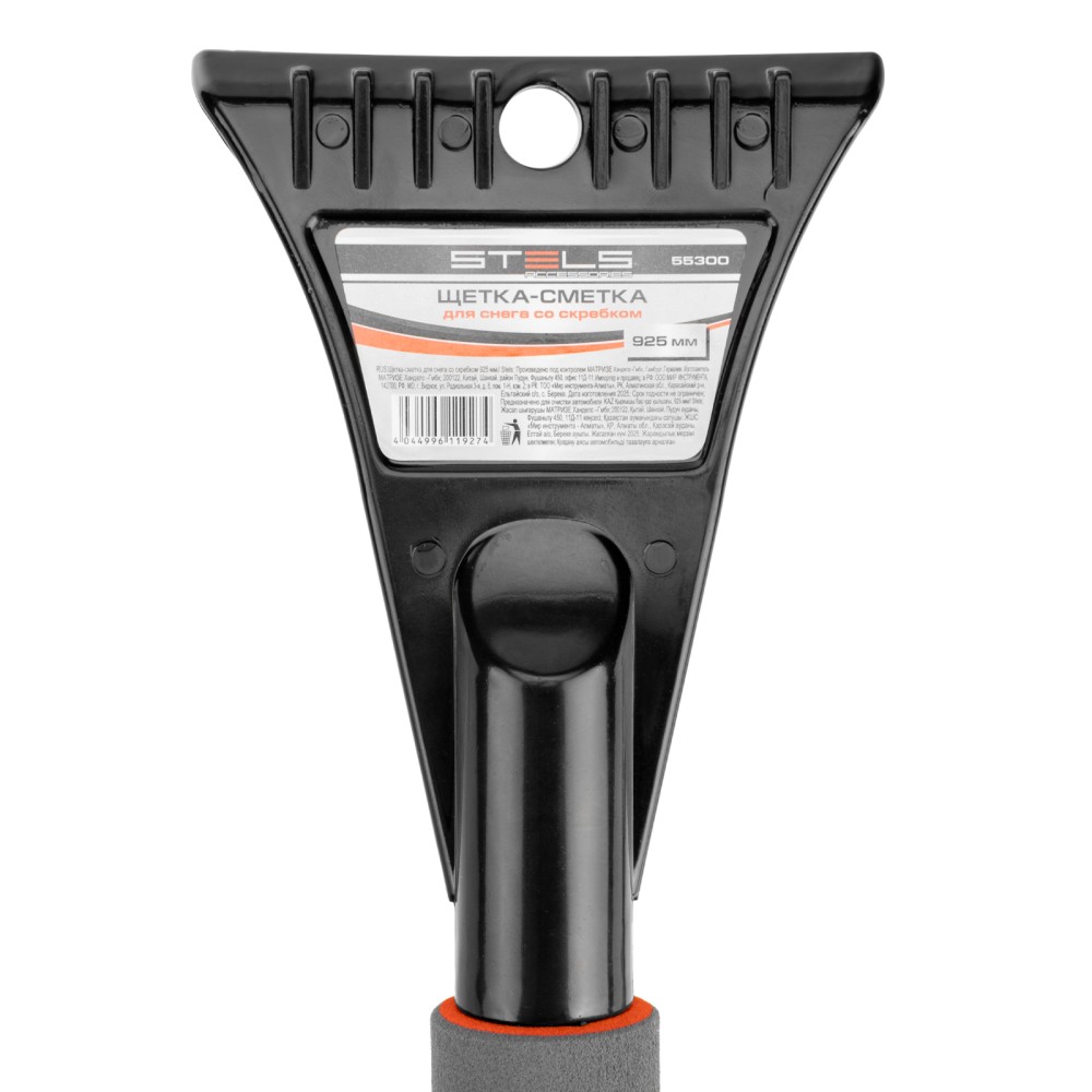 Щетка-сметка для снега со скребком Stels 55300 длиной 93 см используется для чистки автомобиля в зимний период. Длина рабочей части составляет 23 см. Благодаря удлиненной рукоятке автолюбитель легко справится со снегом на капоте и крыше машины.ПреимуществаДолговечность — щетка из морозоустойчивого пластика и алюминиевого сплава сохраняет рабочие свойства при температуре до -40 ℃.Высокая эффективность — щетина с распушенными кончиками не царапает лакокрасочное покрытие, скребок шириной 11 см быстро очищает стекла.Удаление толстого слоя наледи — на скребке предусмотрены специальные зубья.Эргономичность — изогнутая рукоятка облегчает очистку труднодоступных мест, благодаря мягкой неопреновой накладке щетку комфортно держать без перчаток.