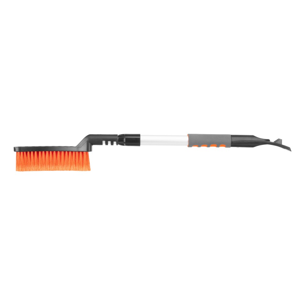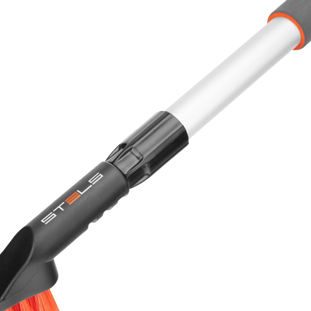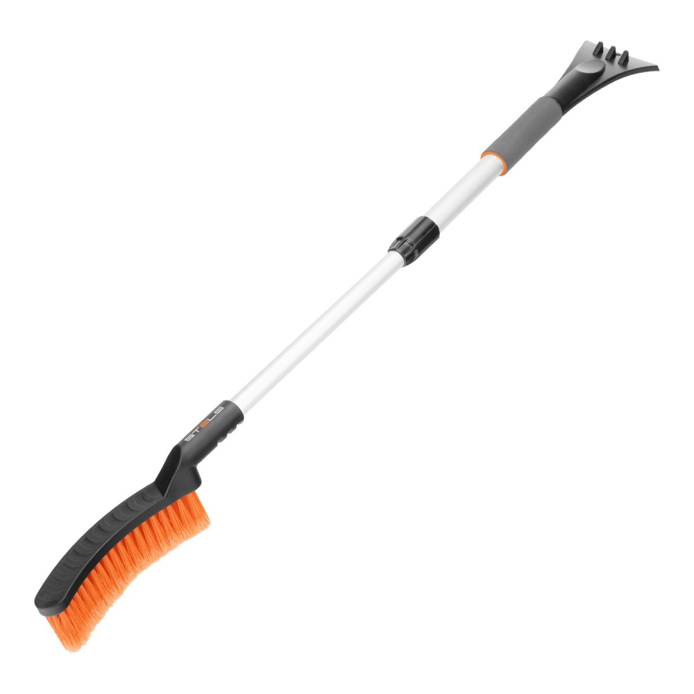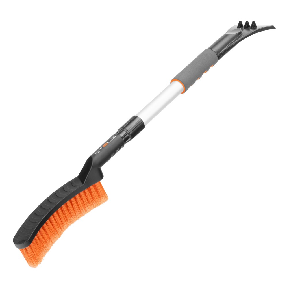 Телескопическая щетка-сметка для снега со скребком Stels 55304 регулируется по длине в диапазоне 73-101 см. Позволяет быстро очистить автомобиль от снега и наледи, раздвижная рукоятка облегчает чистку капота и крыши. Длина рабочей части составляет 20 см, ширина скребка — 11 см. Щетка будет полезна автолюбителям.ПреимуществаДолговечность — щетка из морозоустойчивого пластика и алюминиевого сплава сохраняет рабочие свойства при температуре до -40 ℃.Высокая эффективность — скребок с зубьями для дробления льда успешно справляется даже с толстым слоем наледи.Аккуратное очищение — плотная щетина, распушенная на концах, эффективно убирает слой снега, не царапая поверхность кузова.Комфортное использование — мягкая неопреновая накладка на рукоятке позволяет держать щетку без перчаток.