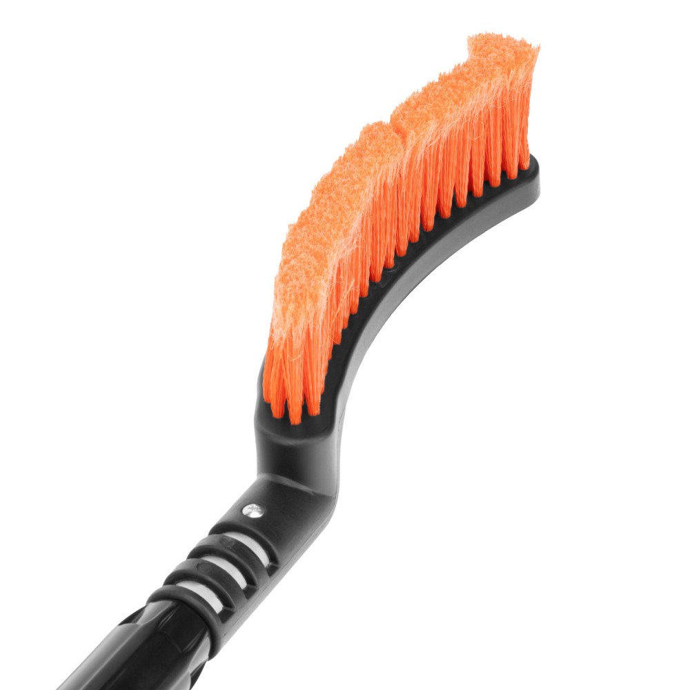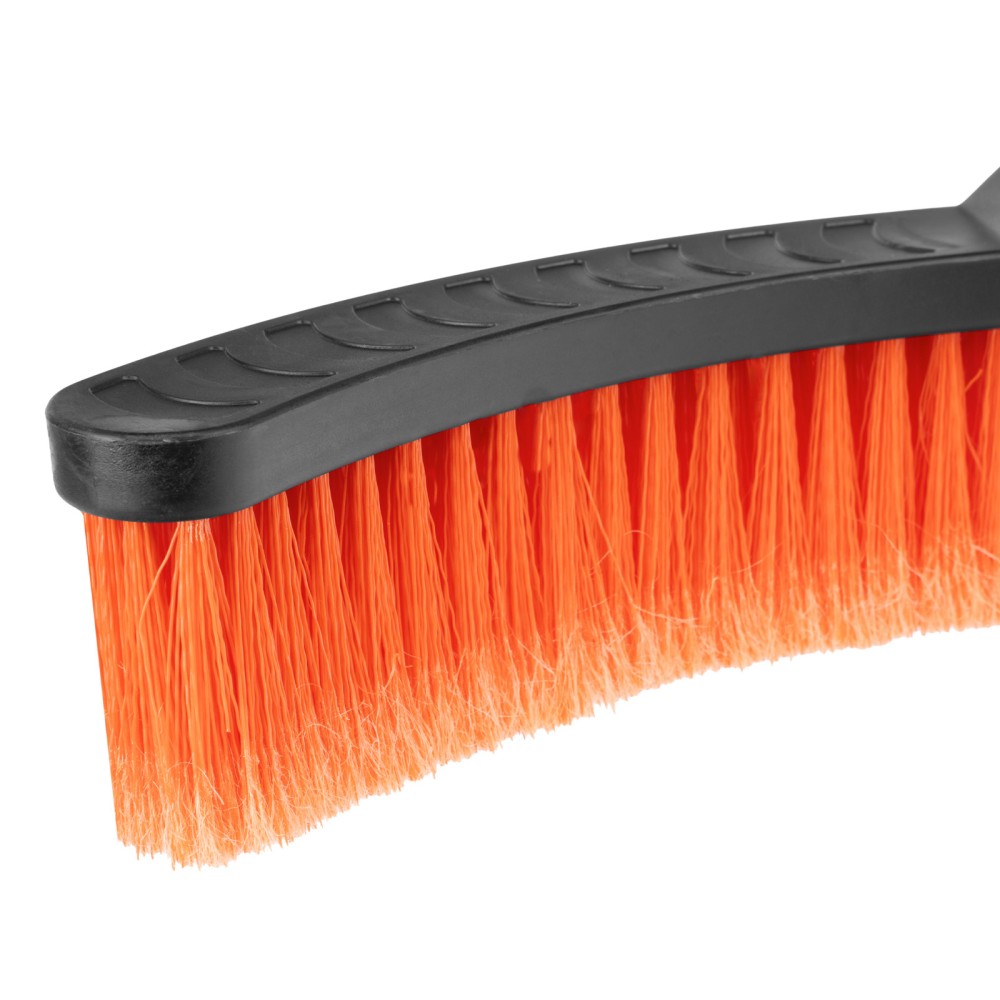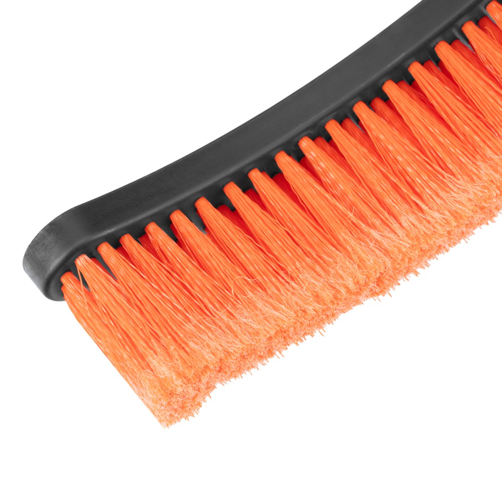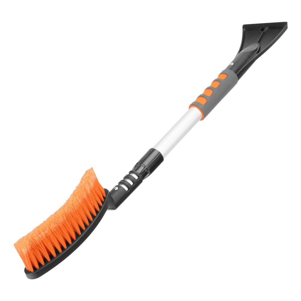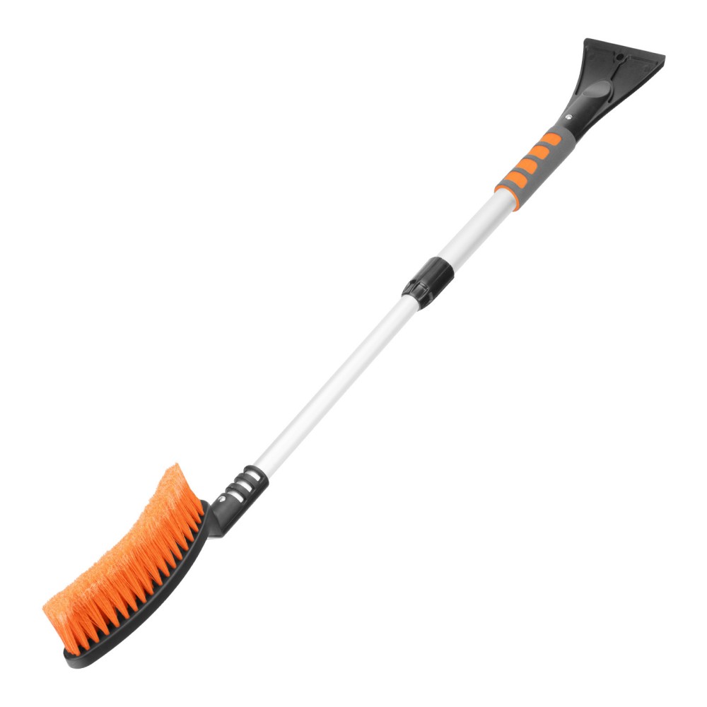 Телескопическая щетка-сметка для снега со скребком Stels 55304 регулируется по длине в диапазоне 73-101 см. Позволяет быстро очистить автомобиль от снега и наледи, раздвижная рукоятка облегчает чистку капота и крыши. Длина рабочей части составляет 20 см, ширина скребка — 11 см. Щетка будет полезна автолюбителям.ПреимуществаДолговечность — щетка из морозоустойчивого пластика и алюминиевого сплава сохраняет рабочие свойства при температуре до -40 ℃.Высокая эффективность — скребок с зубьями для дробления льда успешно справляется даже с толстым слоем наледи.Аккуратное очищение — плотная щетина, распушенная на концах, эффективно убирает слой снега, не царапая поверхность кузова.Комфортное использование — мягкая неопреновая накладка на рукоятке позволяет держать щетку без перчаток.