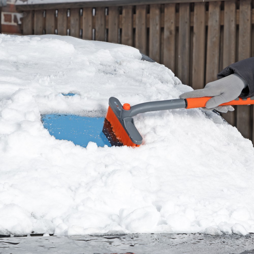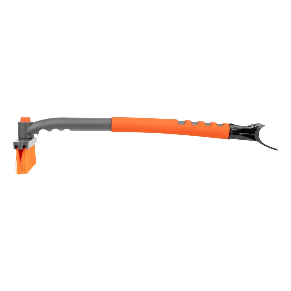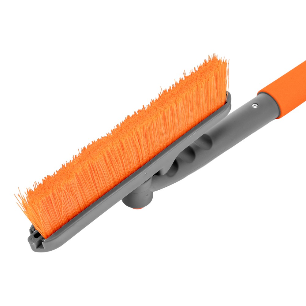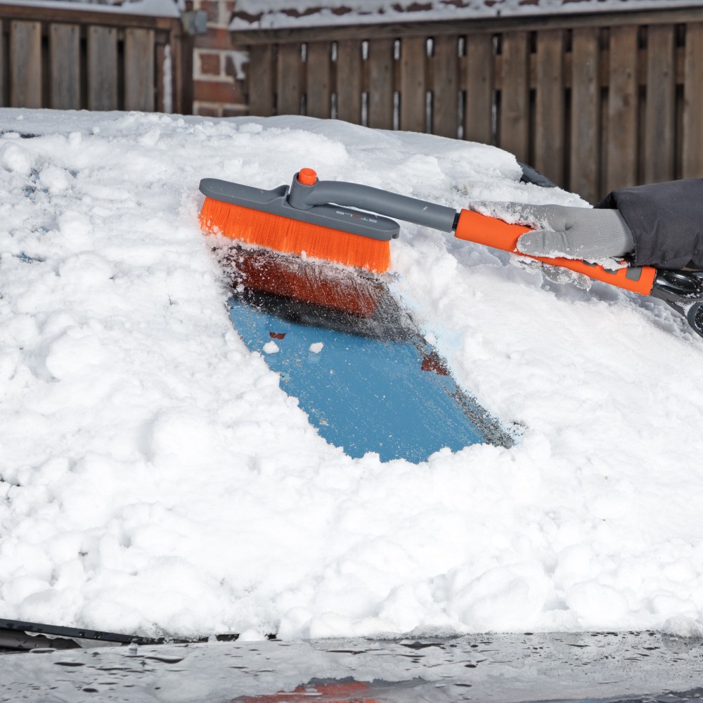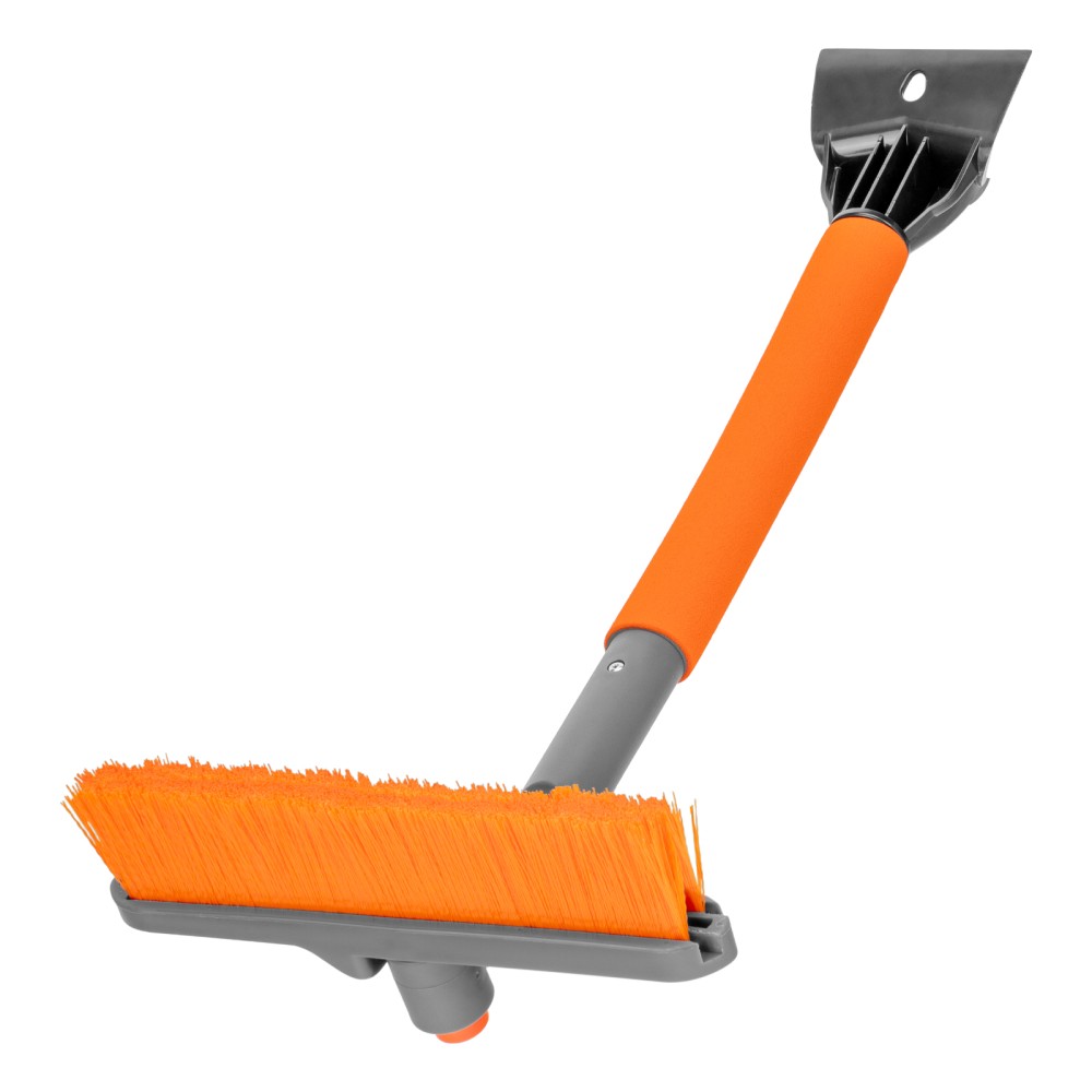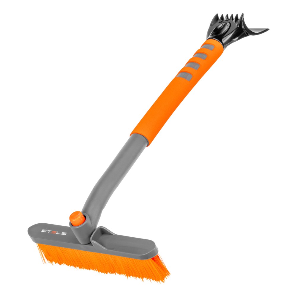 Щетка-сметка для снега со скребком Stels 55305 длиной 62 см, с поворотной головой, предназначена для чистки автомобиля после снегопада. Длина рабочей части составляет 24 см. Распушенная на кончиках щетина не царапает поверхность кузова. Щетка-скребок пригодится автолюбителям.ПреимуществаДолговечность — щетка из морозоустойчивого пластика и алюминиевого сплава сохраняет рабочие свойства при температуре до -40 ℃.Высокая эффективность — скребок шириной 10 см быстро снимает толстый слой наледи со стекол, вращающаяся голова облегчает очистку узких и труднодоступных мест (доступна фиксация в одном из 2 положений).Эргономичность — за счет мягкой неопреновой накладки щетку удобно держать в руке даже в сильные морозы.
