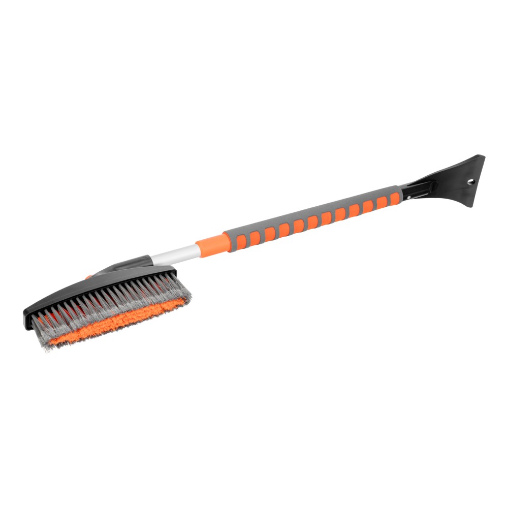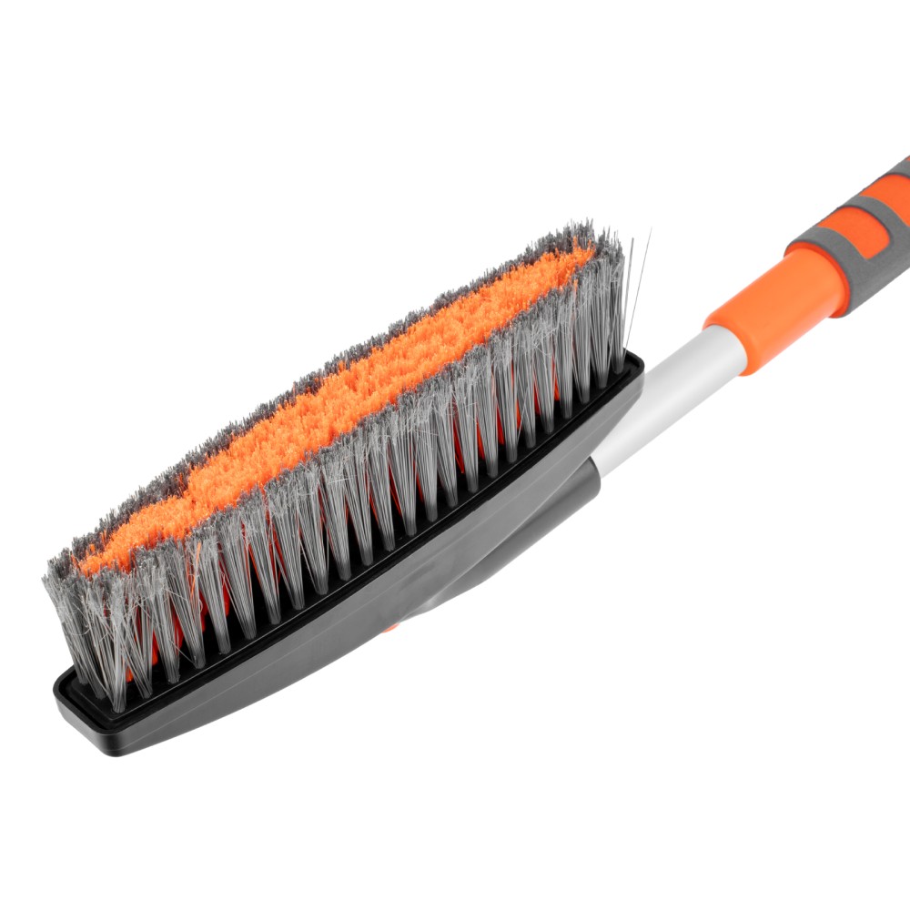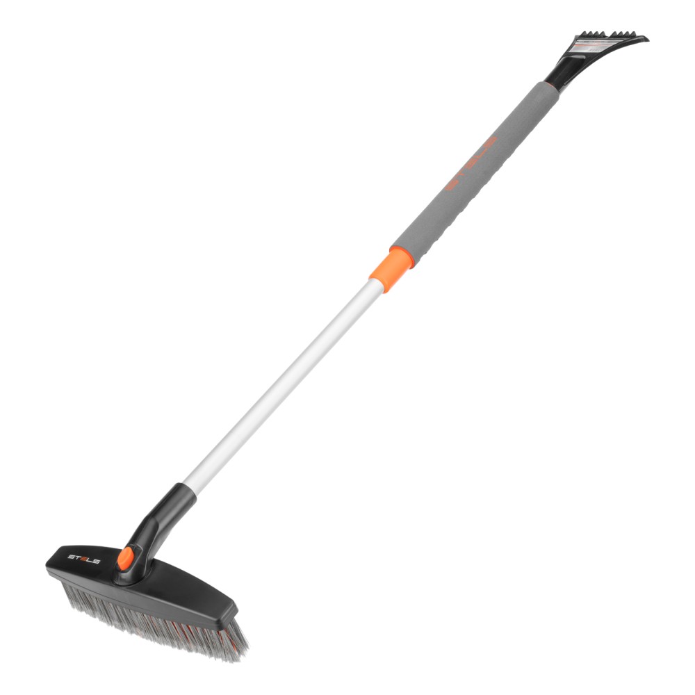 Телескопическая щетка-сметка для снега со скребком Stels 55313 регулируется по длине в диапазоне 82-110 см. Позволяет быстро очистить автомобиль от снега и наледи, раздвижная рукоятка облегчает чистку капота и крыши. Длина рабочей части составляет 23 см, ширина скребка — 11 см. Щетка будет полезна автолюбителям.ПреимуществаДолговечность — щетка из морозоустойчивого пластика и алюминиевого сплава сохраняет рабочие свойства при температуре до -40 ℃.Высокая эффективность — скребок с зубьями для дробления льда успешно справляется даже с толстым слоем наледи.Аккуратное очищение — плотная щетина, распушенная на концах, эффективно убирает слой снега, не царапая поверхность кузова.Комфортное использование — мягкая неопреновая накладка на рукоятке позволяет держать щетку без перчаток.
