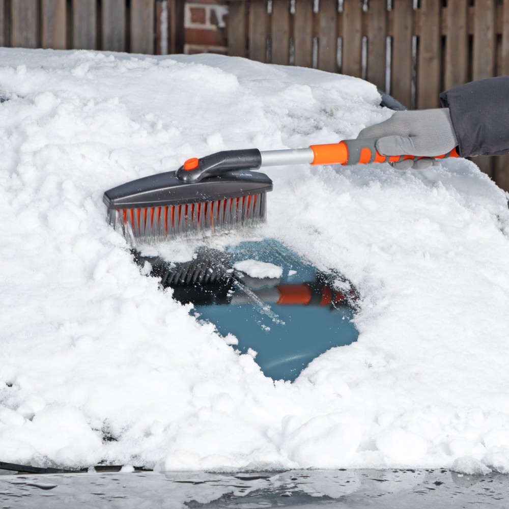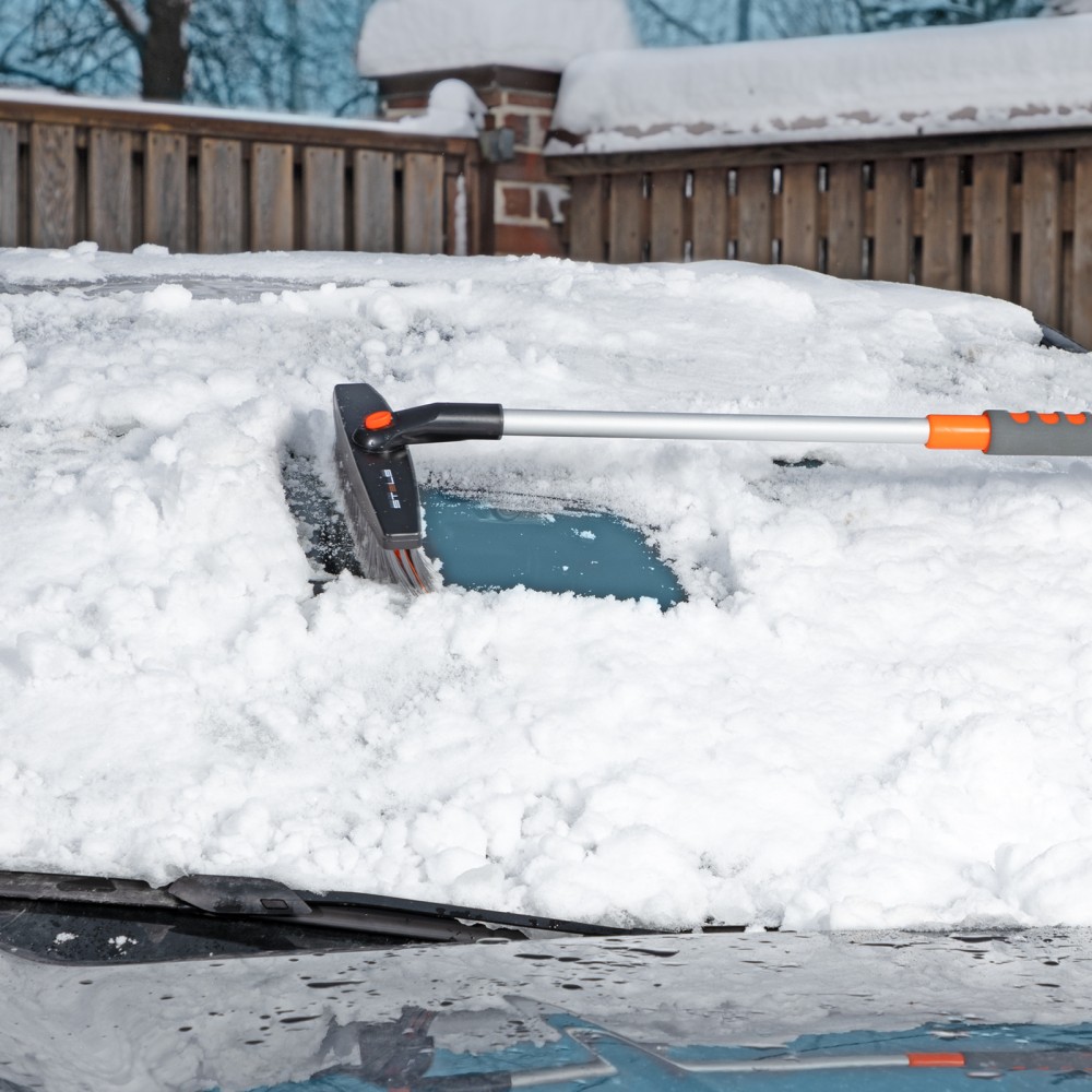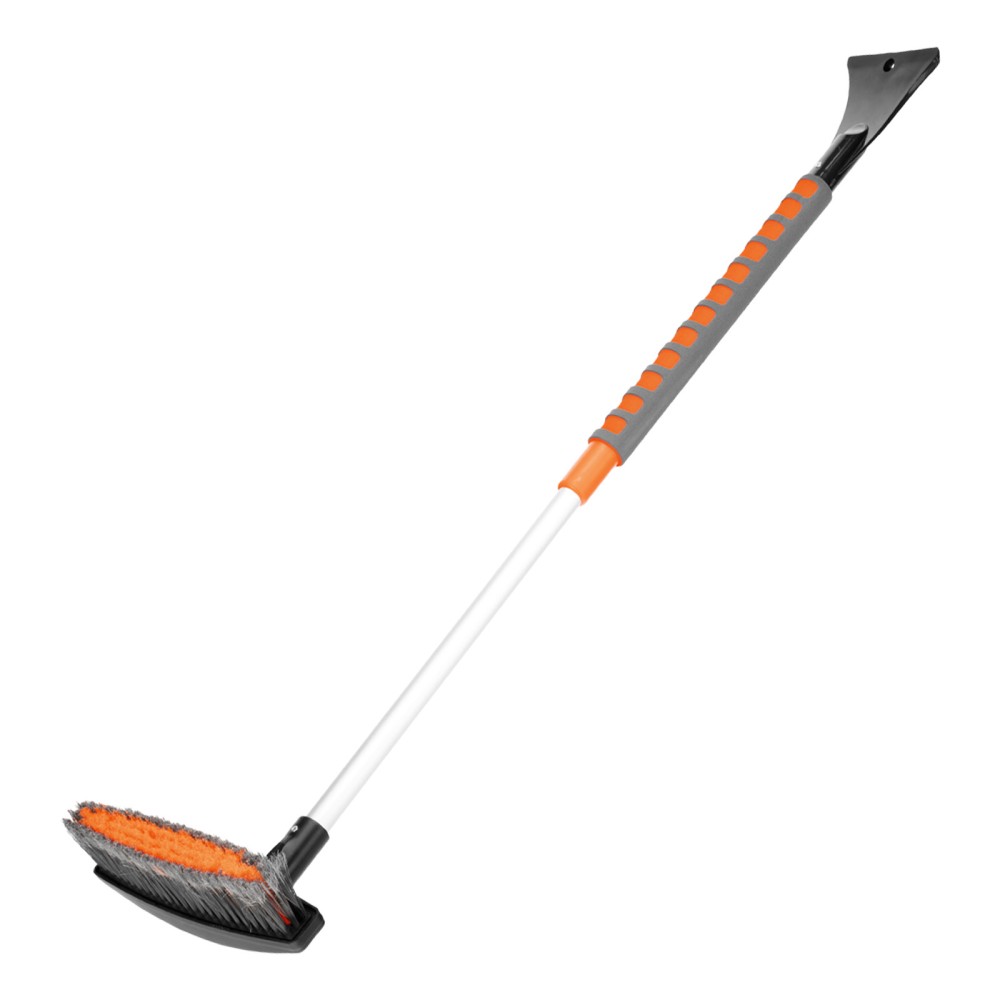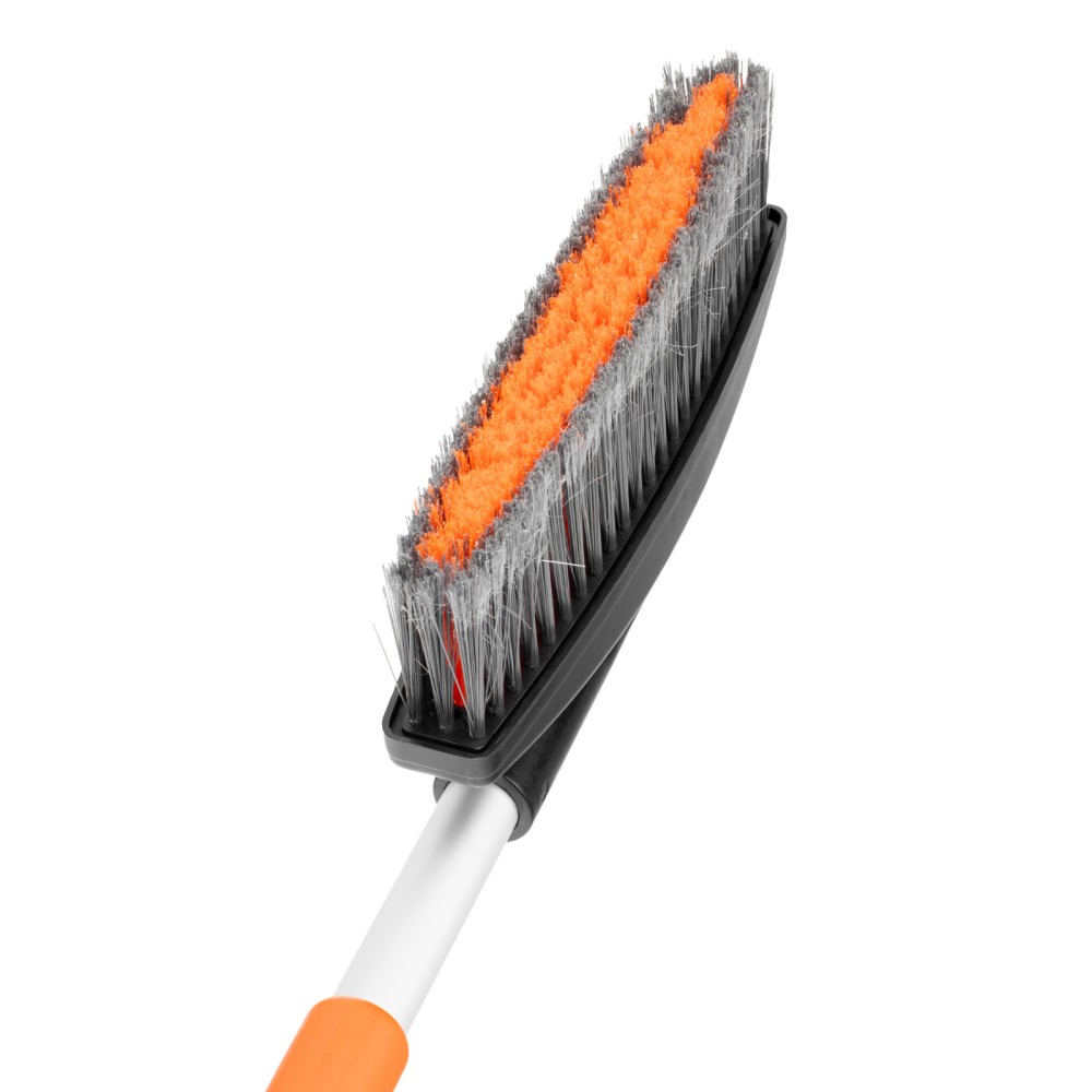 Телескопическая щетка-сметка для снега со скребком Stels 55313 регулируется по длине в диапазоне 82-110 см. Позволяет быстро очистить автомобиль от снега и наледи, раздвижная рукоятка облегчает чистку капота и крыши. Длина рабочей части составляет 23 см, ширина скребка — 11 см. Щетка будет полезна автолюбителям.ПреимуществаДолговечность — щетка из морозоустойчивого пластика и алюминиевого сплава сохраняет рабочие свойства при температуре до -40 ℃.Высокая эффективность — скребок с зубьями для дробления льда успешно справляется даже с толстым слоем наледи.Аккуратное очищение — плотная щетина, распушенная на концах, эффективно убирает слой снега, не царапая поверхность кузова.Комфортное использование — мягкая неопреновая накладка на рукоятке позволяет держать щетку без перчаток.