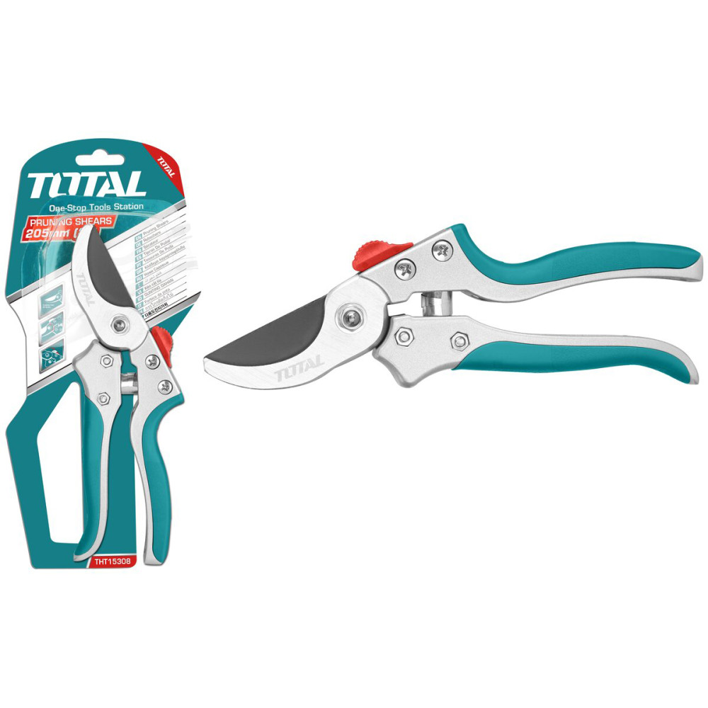 - Секатор TOTAL используется для интенсивных садовых работ- срезания веток.