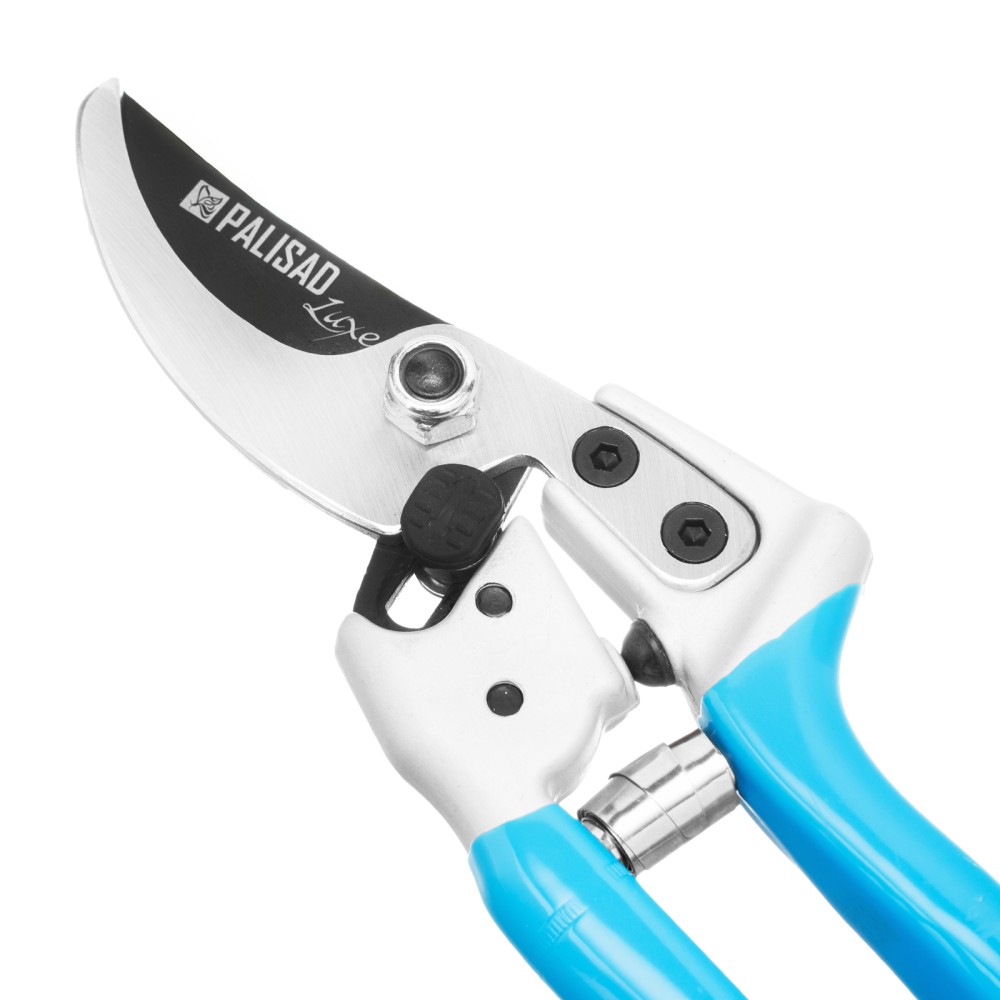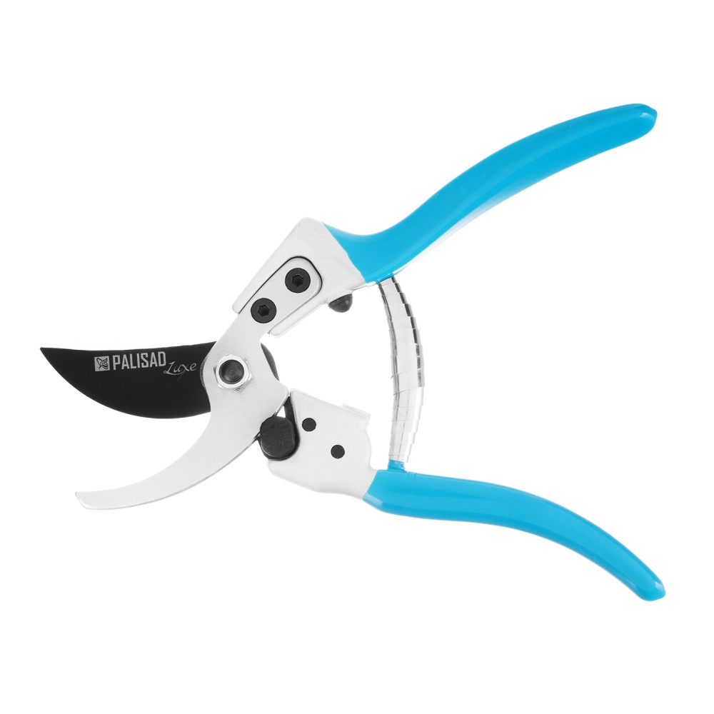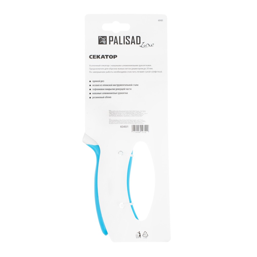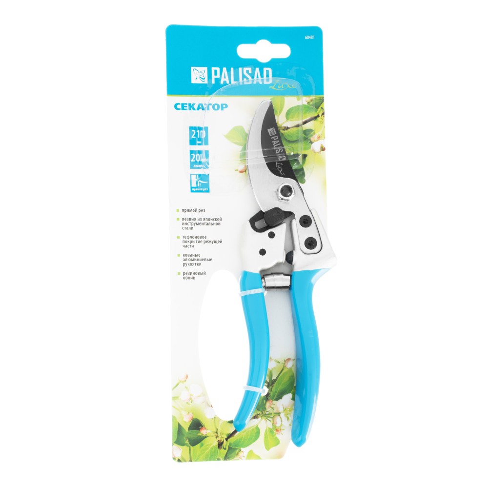 Секатор прямого реза Palisad LUXE 60481 длиной 210 мм, с металлическими рукоятками в ПВХ-оболочке, позволяет чисто обрезать живые ветки толщиной до 20 мм, причиняя растению минимальный вред. Лезвия движутся в параллельных плоскостях, а плотность их примыкания регулируется винтом, поэтому срез всегда получается гладким и аккуратным. Секатор пригодится для ухода за растительностью на дачном участке.ПреимуществаНадежность — лезвия изготовлены из высокопрочной японской инструментальной стали SK-5, рукоятки из алюминиевого сплава устойчивы к излому и изгибу.Высокий ресурс — режущее лезвие прошло индукционную закалку и имеет прецизионную заточку.Эффективная работа — увеличенный шарнир повышает усилие сжатия на 10%, тефлоновое покрытие режущего лезвия облегчает рез.Устойчивость к разрушению — рабочие поверхности защищены от коррозии тефлоновым покрытием режущего лезвия и хромированным — опорного.Безопасное хранение и транспортировка — лезвия надежно удерживаются фиксатором в сомкнутом положении.Комфортная работа — рукоятки с ПВХ-покрытием удобно ложатся в руку.