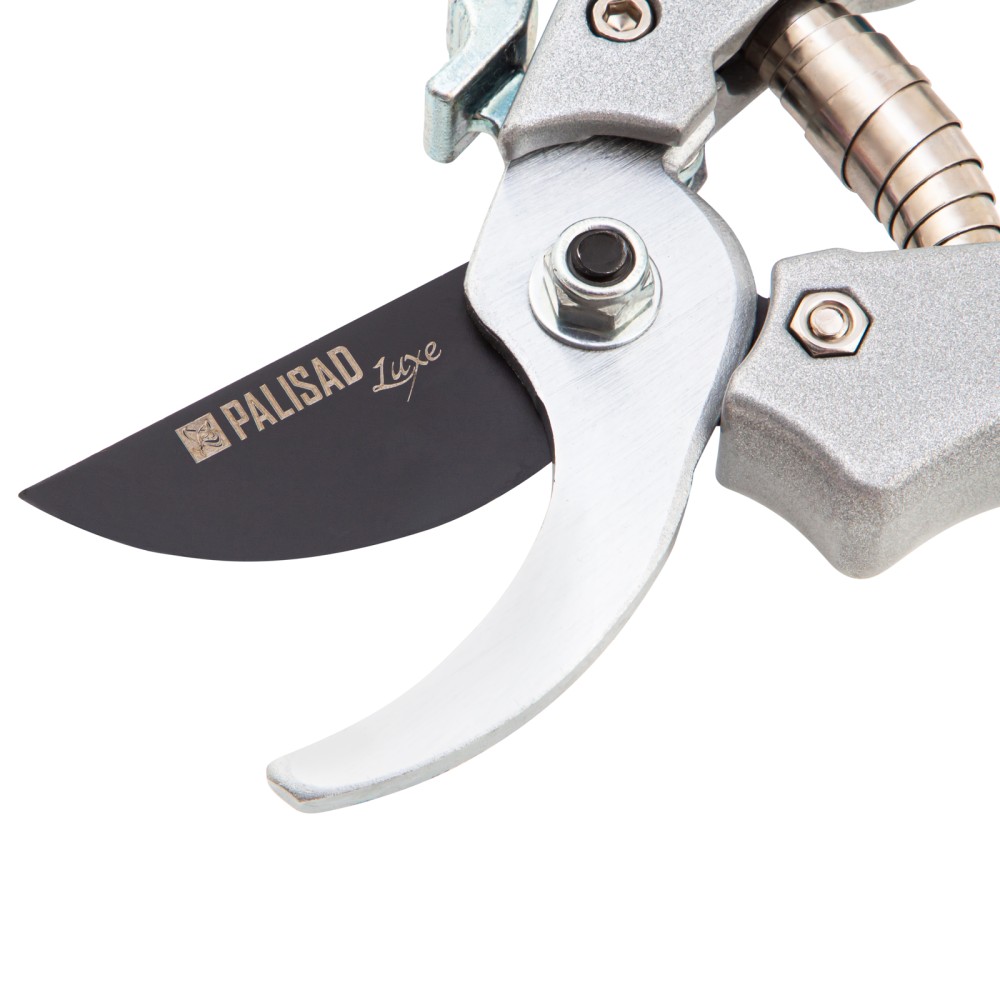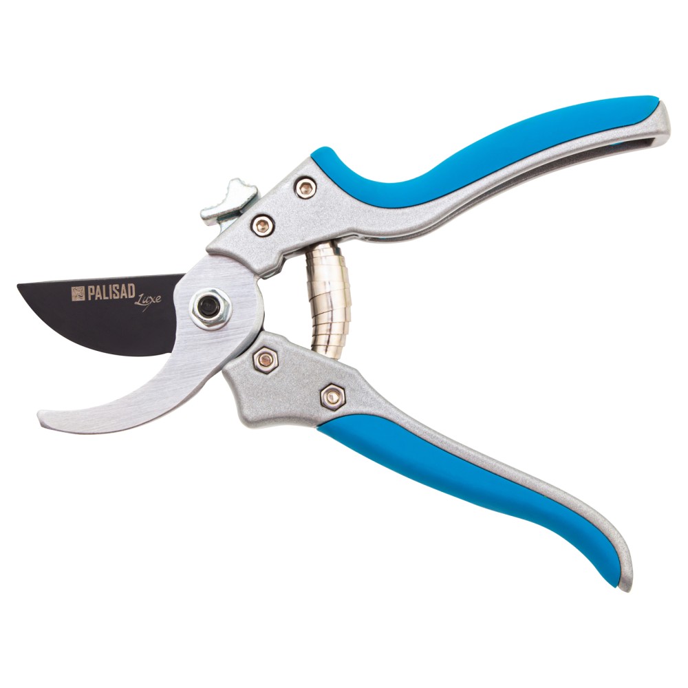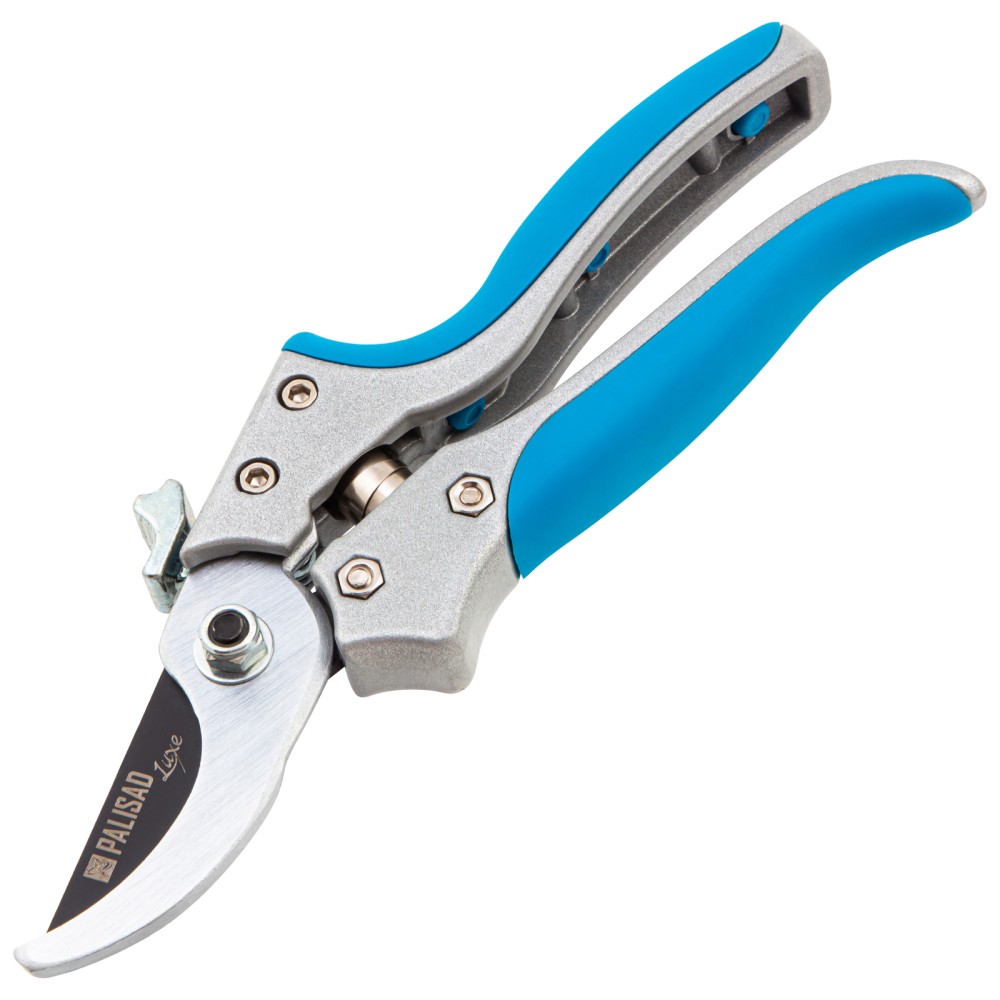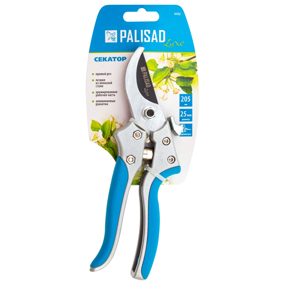 Секатор прямого реза Palisad LUXE 60482 длиной 205 мм, с металлическими обрезиненными рукоятками, используется для обрезания живых веток диаметром до 25 мм, поэтому будет полезен на загородном участке. Подходит для ухода за комнатными растениями, формирования крон бонсай и создания топиарных скульптур. Рабочее лезвие чисто отсекает ветку, поскольку движется в плоскости, параллельной опорному лезвию. В случае ослабления примыкания лезвий их можно отрегулировать при помощи винта.ПреимуществаПрочность и долговечность— лезвия изготовлены из высококачественной японской инструментальной стали SK-5, рукоятки выполнены из алюминиевого сплава.Высокий ресурс — режущее лезвие прошло индукционную закалку, его кромка имеет прецизионную заточку, хромированное покрытие защищает рабочие поверхности от коррозии.Защита от самопроизвольного раскрытия — в нерабочем положении лезвия надежно удерживаются фиксатором.Комфортная работа — благодаря вставкам из термопластичной резины рукоятки не выскальзывают из ладони.
