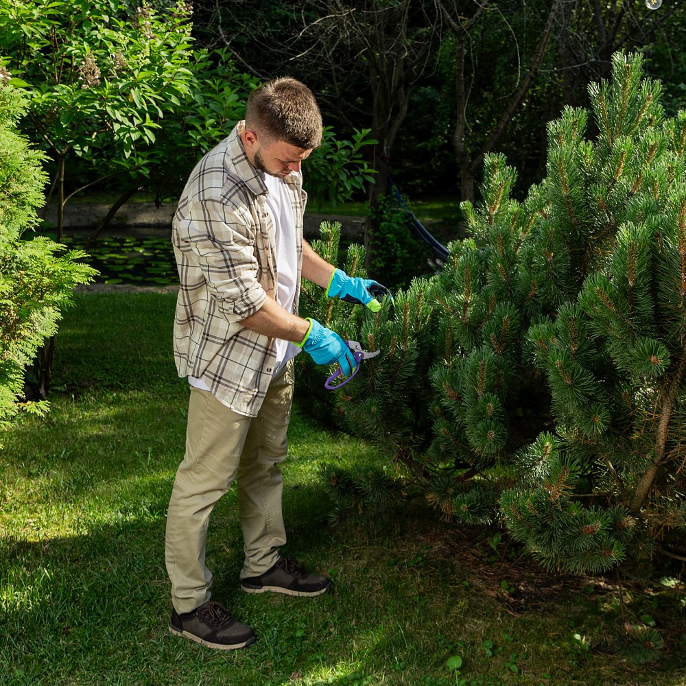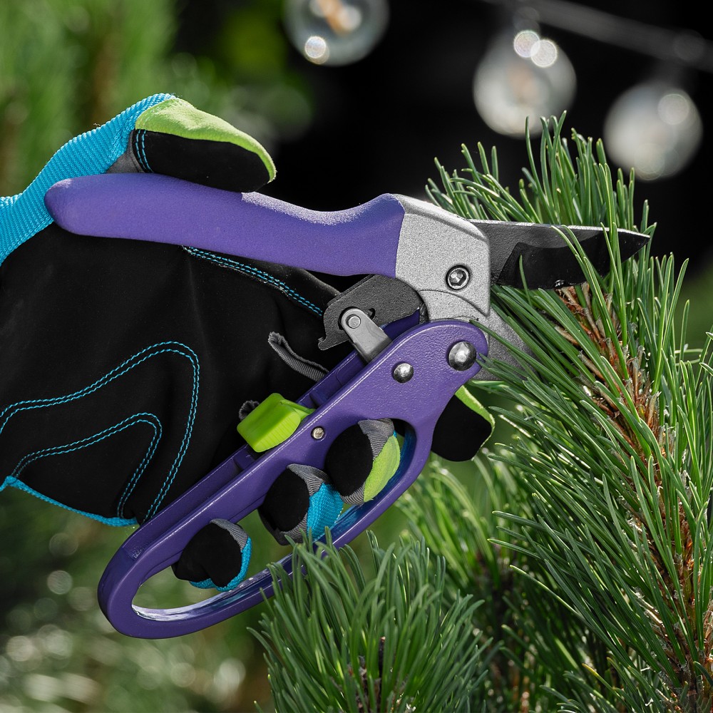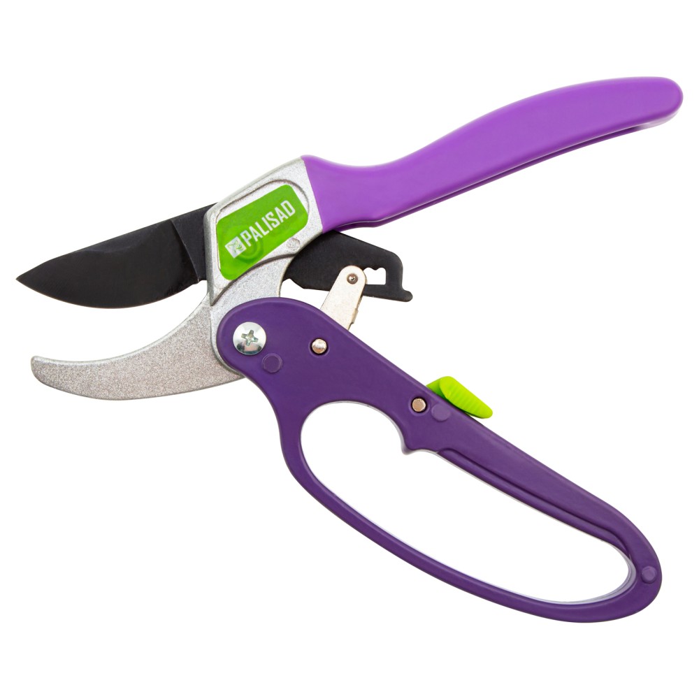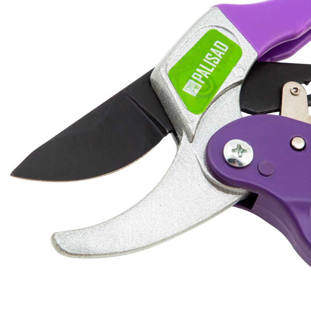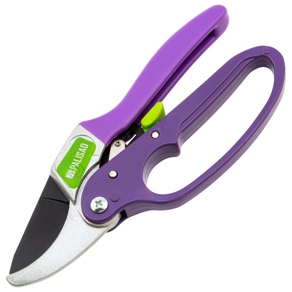 Секатор прямого реза Palisad 60488 длиной 200 мм, с храповым механизмом и металлическими обрезиненными рукоятками, — универсальный инструмент, использующийся для обрезки живых и сухих веток толщиной до 20 мм. Благодаря храповому механизму обрезание ветки происходит пошагово, что обеспечивает ровный и чистый срез с минимальными повреждениями растения. Опорное лезвие с углублением помогает удерживать ветку в процессе работы. Степень смыкания лезвий можно регулировать посредством винта. Секатор будет полезен для ухода за растительностью на дачном участке.ПреимуществаПрочность и высокий ресурс — лезвия изготовлены из среднеуглеродистой стали, режущая кромка, прошедшая индукционную закалку, имеет прецизионную заточку.Защита от разрушения — тефлоновое покрытие на рабочем лезвии и порошковая эмаль на опорном предохраняют садовый секатор от коррозии.Эффективность — тефлоновое покрытие облегчает рез, храповой механизм увеличивает прикладываемое усилие на 20%.Безопасность — гарда на нижней рукоятке защищает пальцы от травм, фиксатор удерживает лезвия в сомкнутом положении во время хранения и транспортировки.Надежность — верхняя рукоятка отлита из прочного алюминиевого сплава, нижняя — из углеродистой стали.Комфортная работа — благодаря накладке из ПВХ на верхней рукоятке инструмент удобно лежит в руке.