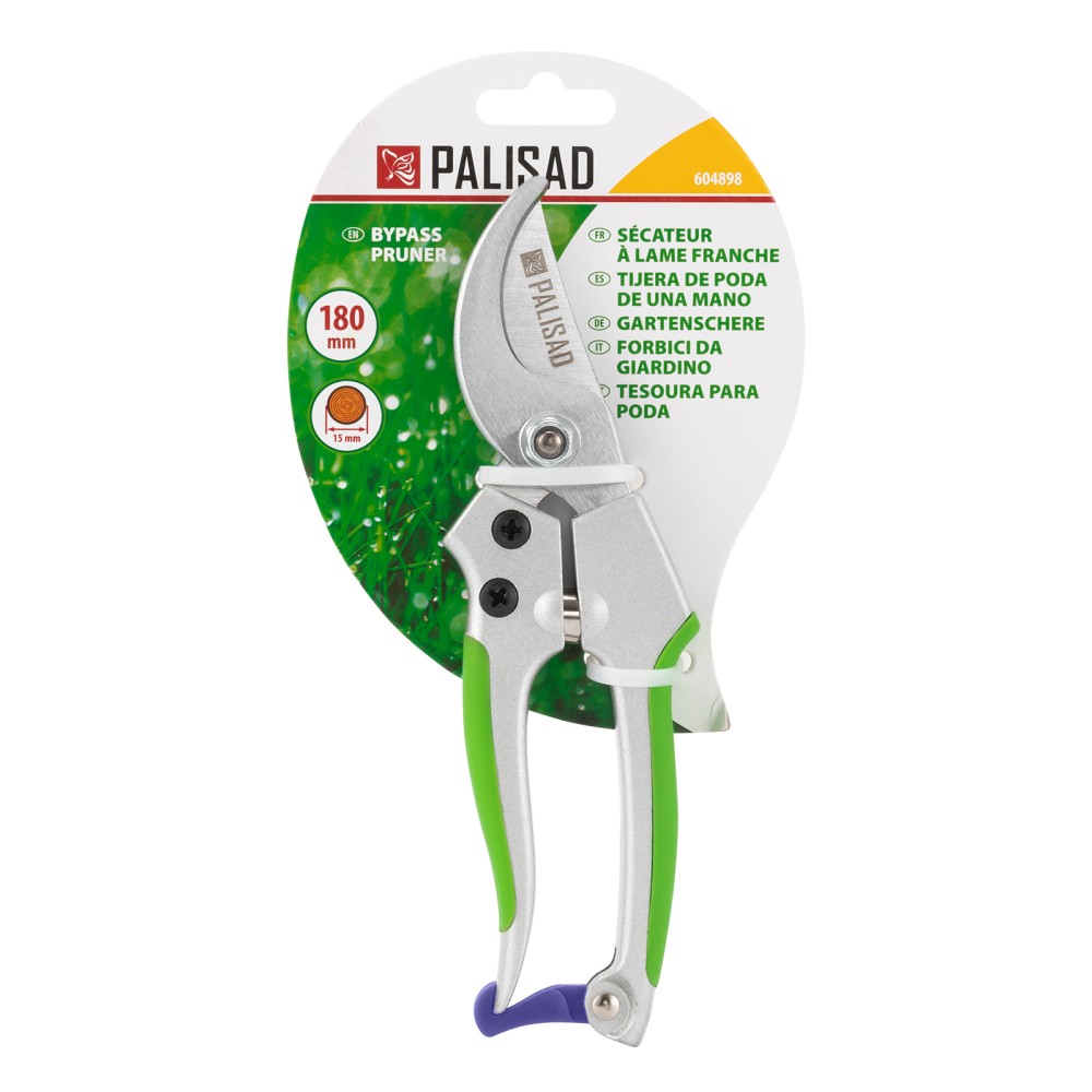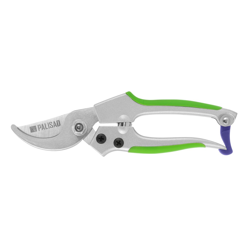 Секатор прямого реза Palisad 60489 длиной 180 мм, с металлическими обрезиненными рукоятками, используется для обрезки живых веток диаметром до 15 мм. Пригодится для ухода за садом и огородом, а также для оформления крон бонсай и создания топиарных скульптур. Параллельно движущиеся лезвия обеспечивают гладкий и ровный срез, минимально повреждая растение. Повысить качество работы секатора можно, отрегулировав плотность смыкания лезвий.ПреимуществаНадежность — инструмент с лезвиями из прочной среднеуглеродистой стали и литыми рукоятками из алюминиевого сплава подходит для активного использования.Высокий ресурс — режущая кромка прошла индукционную закалку и имеет прецизионную заточку.Коррозионная стойкость — лезвия хромированы для защиты от разрушения.Комфортная работа — рукоятки с накладками из термопластичной резины не выскальзывают из ладони.Защита от случайного раскрытия лезвий — удобный фиксатор надежно удерживает рукоятки в сведенном положении во время хранения или транспортировки.
