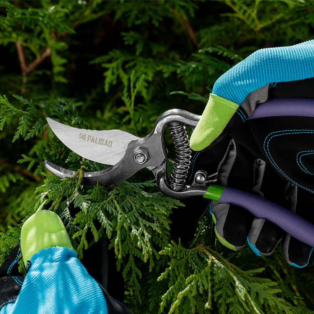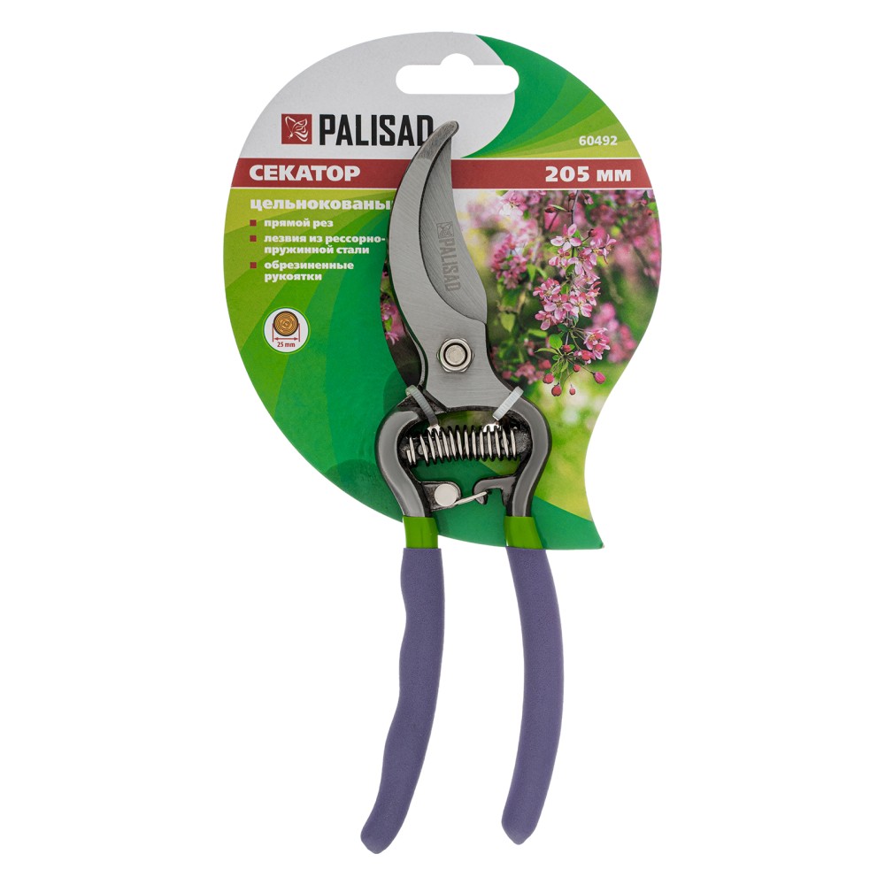 Цельнометаллический секатор прямого реза Palisad 60492 — инструмент для обрезки живых веток диаметром до 25 мм, использующийся для ухода за растительностью на дачном участке. Лезвия, движущиеся в параллельных плоскостях, производят ровный и чистый срез, минимально повреждая растение. Плотность смыкания лезвий можно отрегулировать при помощи винта.ПреимуществаНадежность и долговечность — лезвия изготовлены из высокоуглеродистой стали и прошли индукционную закалку, кованые стальные рукоятки устойчивы к изгибу и излому.Высокий ресурс — режущая кромка с прецизионной заточкой долго сохраняет остроту.Защита от разрушения — лезвия покрыты антикоррозийным маслом.Безопасное хранение и транспортировка — скоба-фиксатор крепко удерживает рукоятки в сомкнутом положении.Комфортная работа — благодаря покрытию из ПВХ рукоятки не выскальзывают из ладони.