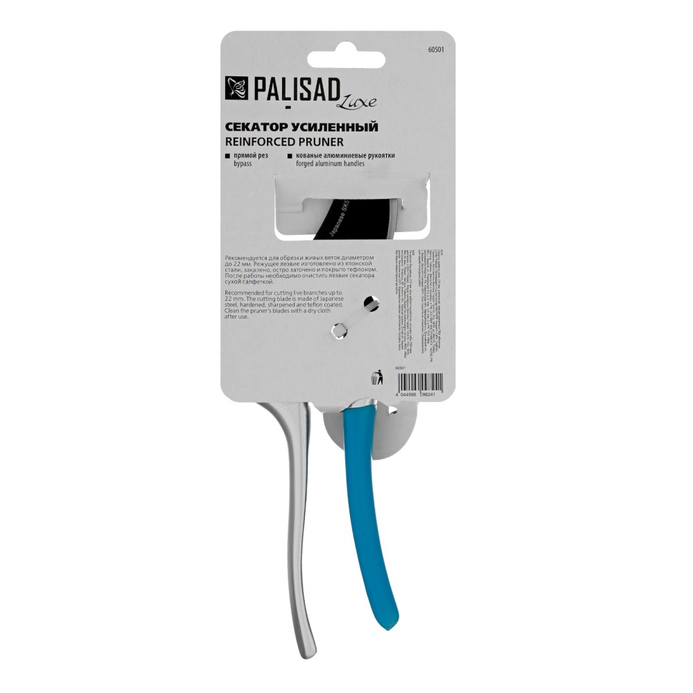 Усиленный секатор прямого реза Palisad LUXE 60501 длиной 210 мм, с нижней рукояткой в ПВХ-оболочке, — инструмент для ухода за растениями. Срезает живые ветки диаметром до 22 мм. Лезвие с тефлоновым покрытием легко отсекает ветку. Поскольку оно движется в плоскости, параллельной опорному лезвию, срез получается аккуратным и гладким, а растение теряет минимальное количество сока. Для облегчения работы конструкцией предусмотрен увеличенный шарнир, повышающий силу сжатия на 10%. Регулировочный винт позволяет плотно подгонять лезвия друг к другу. Инструмент пригодится на дачном участке.ПреимуществаМаксимальная прочность и износостойкость — лезвия изготовлены из высококачественной японской инструментальной стали.Высокий ресурс работоспособности — режущее лезвие прошло индукционную закалку и имеет прецизионную заточку.Защита от коррозии — на режущее лезвие нанесено тефлоновое покрытие, а на опорное — цинковое.Устойчивость к нагрузкам — рукоятки секатора изготовлены из прочного алюминиевого сплава.Комфорт во время работы — на нижней рукоятке имеется ПВХ-накладка, обеспечивающая удобный хват.Безопасное хранение и транспортировка — фиксатор надежно удерживает лезвия сомкнутыми.