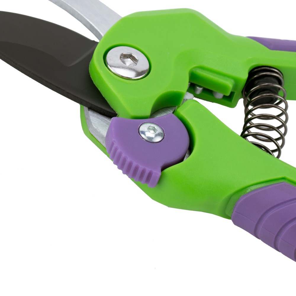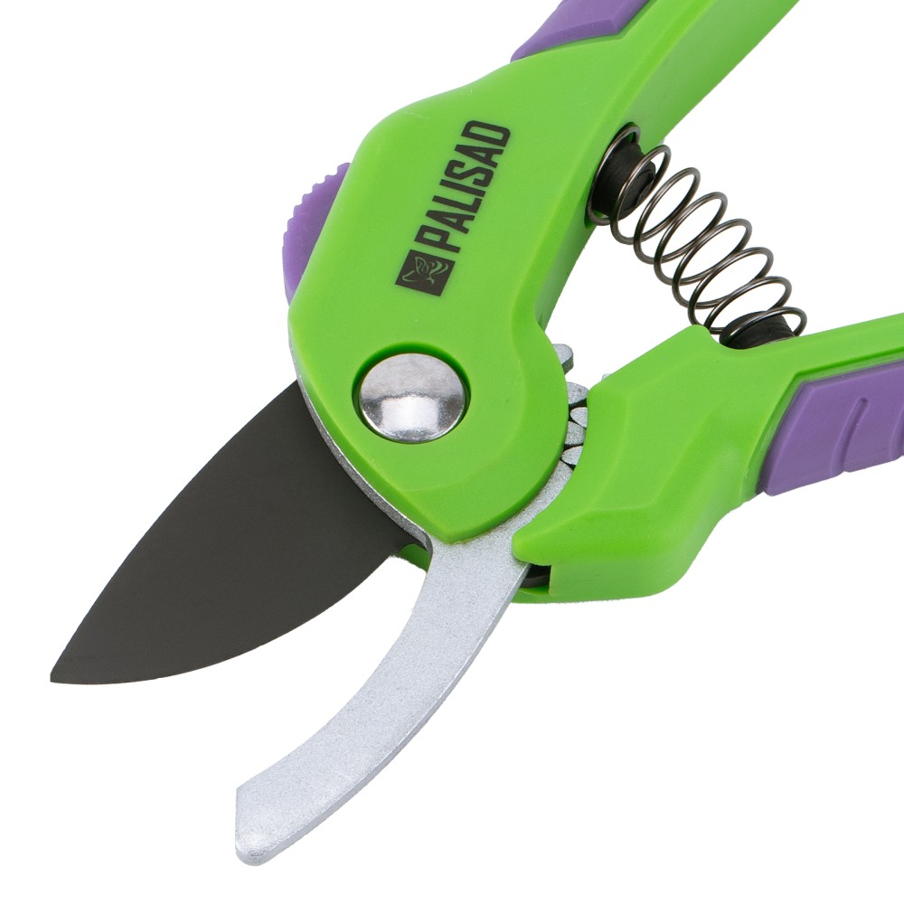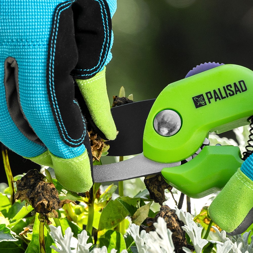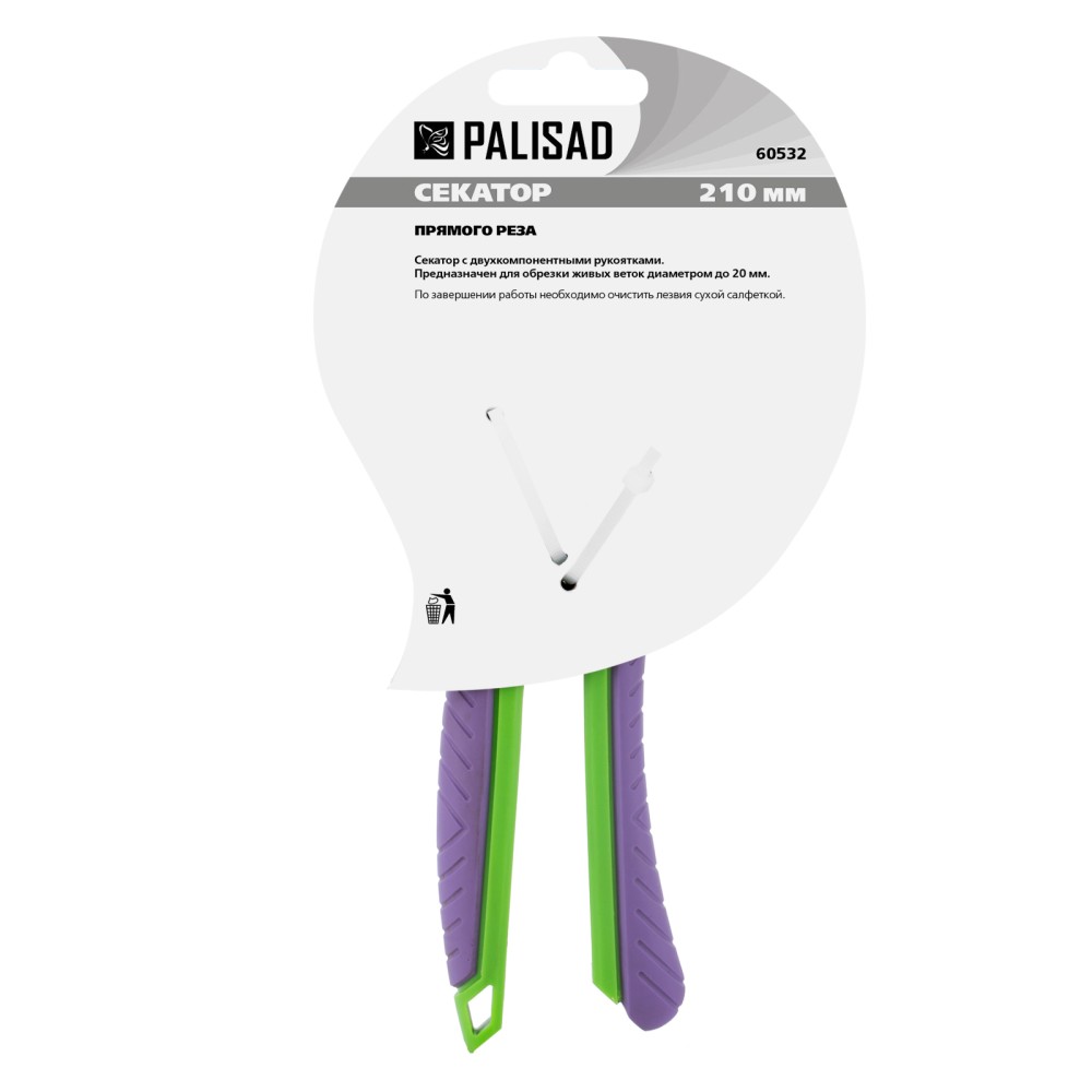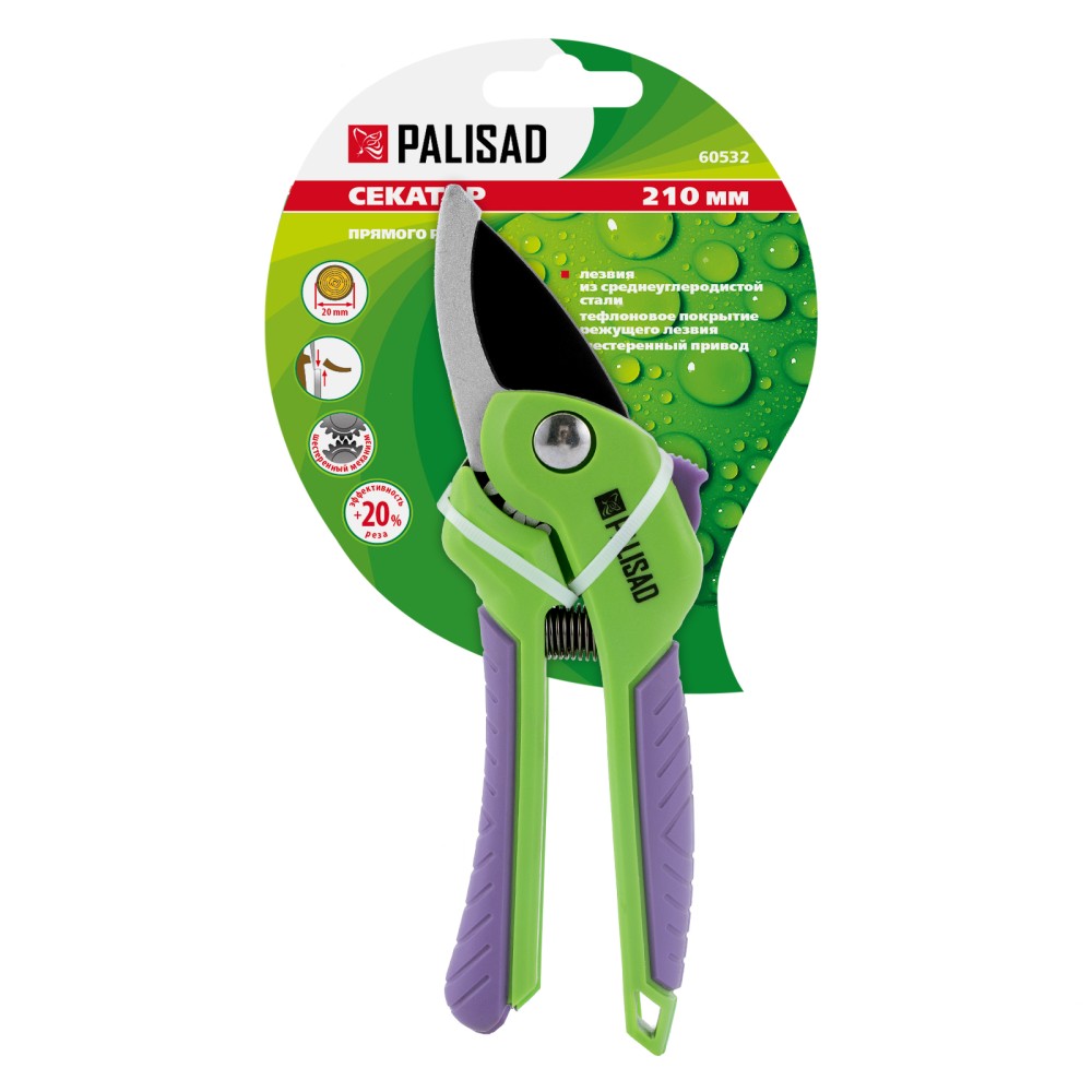 Секатор прямого реза Palisad 60532 длиной 210 мм, с шестеренным приводом и двухкомпонентными рукоятками, используется для щадящей обрезки живых веток толщиной до 20 мм. Режущее лезвие с тефлоновым покрытием легко справляется с этой задачей. Лезвия перемещаются в параллельных плоскостях, поэтому секатор производит чистый и ровный срез, минимально повреждая растение. Шестеренный привод увеличивает силу сжатия на 20%. ПреимуществаПрочность и долговечность — лезвия изготовлены из высокоуглеродистой стали, двухкомпонентные рукоятки устойчивы к воздействию УФ-лучей.Высокий ресурс — режущее лезвие прошло индукционную закалку, его кромка имеет прецизионную заточку. Контроль качества реза — регулировочный винт позволяет повысить плотность примыкания лезвий.Надежная защита от коррозии — на режущее лезвие нанесено тефлоновое покрытие, опорное оцинковано.Комфортная работа — рукоятки со вставками из термопластичной резины обеспечивают надежный хват.Безопасное хранение и транспортировка — фиксатор удерживает лезвия в сомкнутом положении, не давая им самопроизвольно раскрываться.