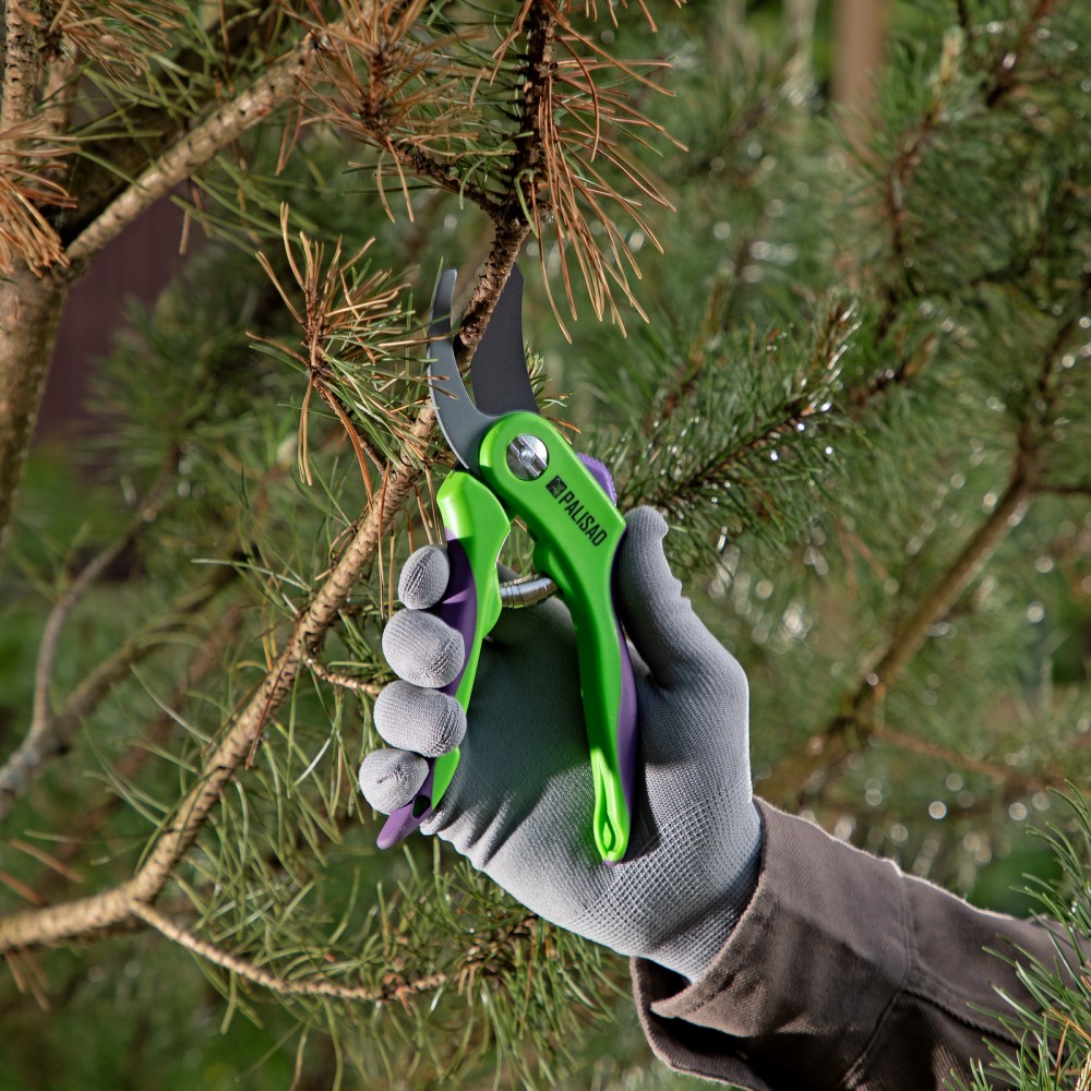 Секатор прямого реза Palisad 60536 длиной 200 мм, с двухкомпонентными рукоятками, способен обрезать живые ветки толщиной до 15 мм и используется для ухода за растительностью. Имеет режущее лезвие с прецизионной заточкой и тефлоновым покрытием, движущееся в параллельной плоскости с опорным лезвием, поэтому срез получается гладким и ровным. Повреждения растения при этом минимальны. Плотность смыкания лезвий регулируется винтом. Секатор будет полезен на дачном участке.ПреимуществаПрочность и износостойкость — лезвия изготовлены из среднеуглеродистой стали, рабочая кромка, прошедшая индукционную закалку, устойчива к истиранию.Защита от коррозии — режущее лезвие имеет тефлоновое покрытие, а опорное покрыто порошковой эмалью.Долговечность — рукоятки выполнены из полипропилена, устойчивого к воздействию ультрафиолета.Эргономичность — благодаря вставкам из термопластичной резины рукоятки не выскальзывают из ладони.Безопасное хранение и транспортировка — удобный фиксатор препятствует случайному раскрытию лезвий.