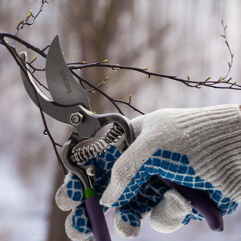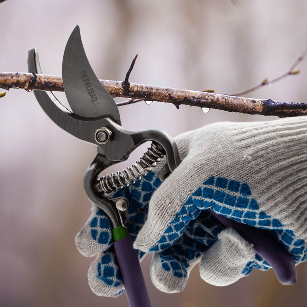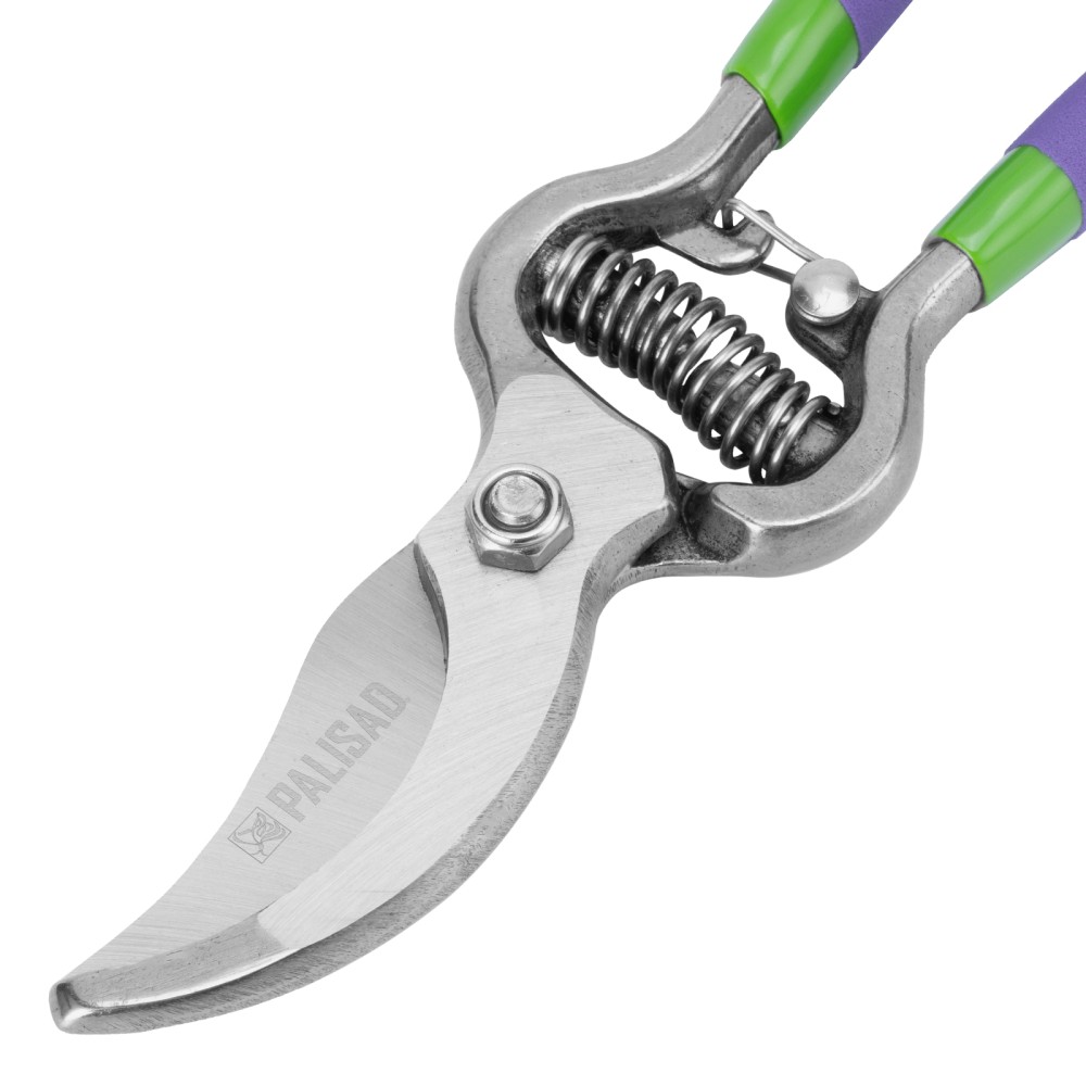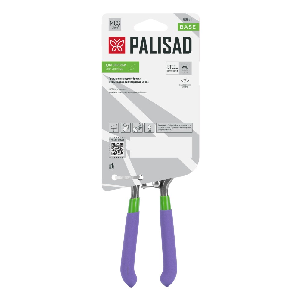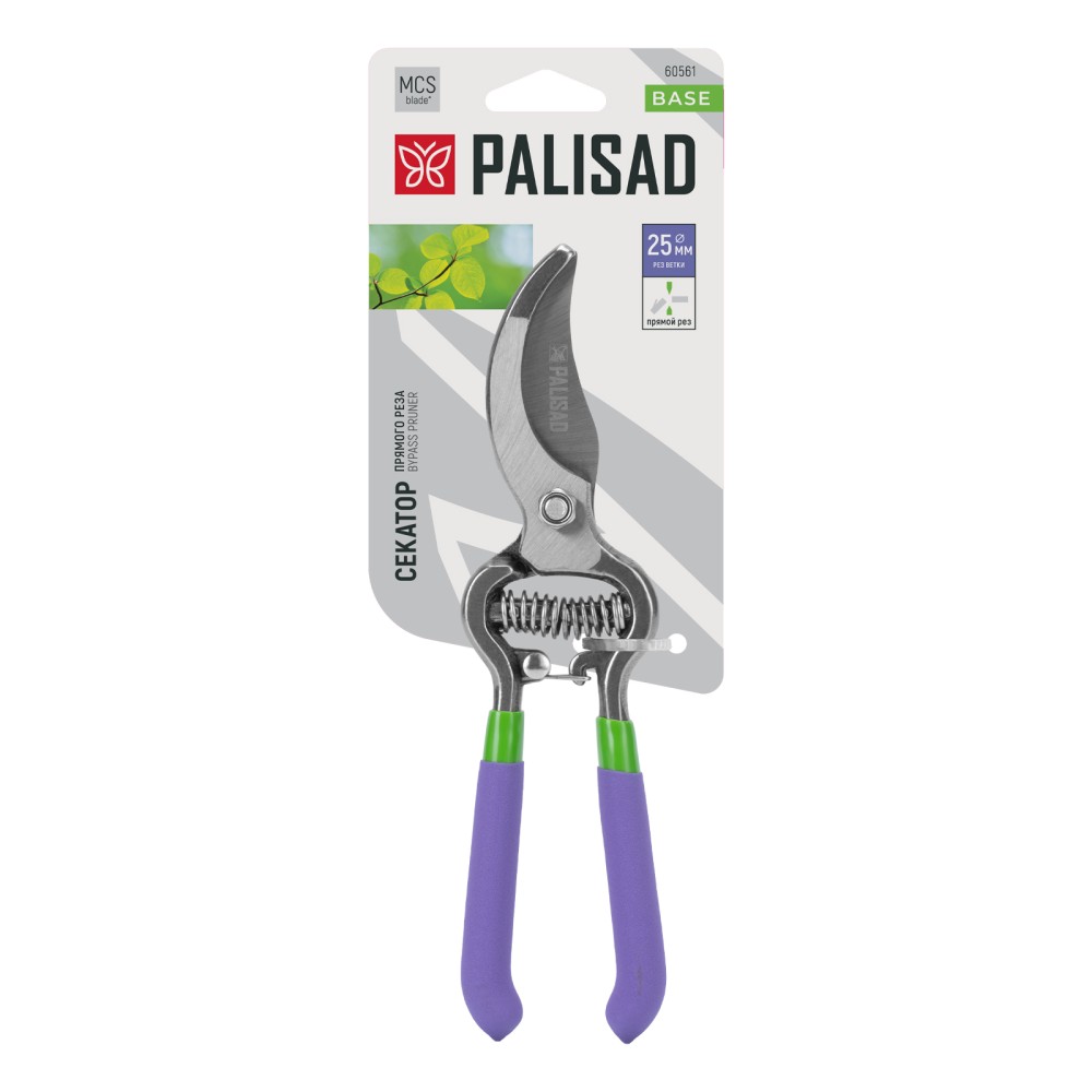 Секатор прямого реза Palisad 60561 общей длиной 200 мм, с обрезиненными рукоятками, используется для обрезки живых веток диаметром до 25 мм. Движущиеся в параллельных плоскостях лезвия производят гладкий и ровный срез, сводя к минимуму потерю сока растением. Регулировочный винт позволяет отрегулировать плотность смыкания лезвий. Секатор пригодится для работы на даче и в саду.ПреимуществаПрочность и износостойкость — лезвия изготовлены из высокоуглеродистой стали, прошедшей индукционную закалку.Высокий ресурс — рабочая кромка с прецизионной заточкой долго сохраняет режущую способность.Защита от разрушения — на лезвия нанесено антикоррозионное масляное покрытие.Надежная конструкция — рукоятки из кованой стали выдерживают высокие нагрузки.Комфорт во время длительной работы — благодаря ПВХ-покрытию рукоятки не выскальзывают из ладони.Безопасное хранение и транспортировка — надежный фиксатор не дает лезвиям самопроизвольно разойтись.