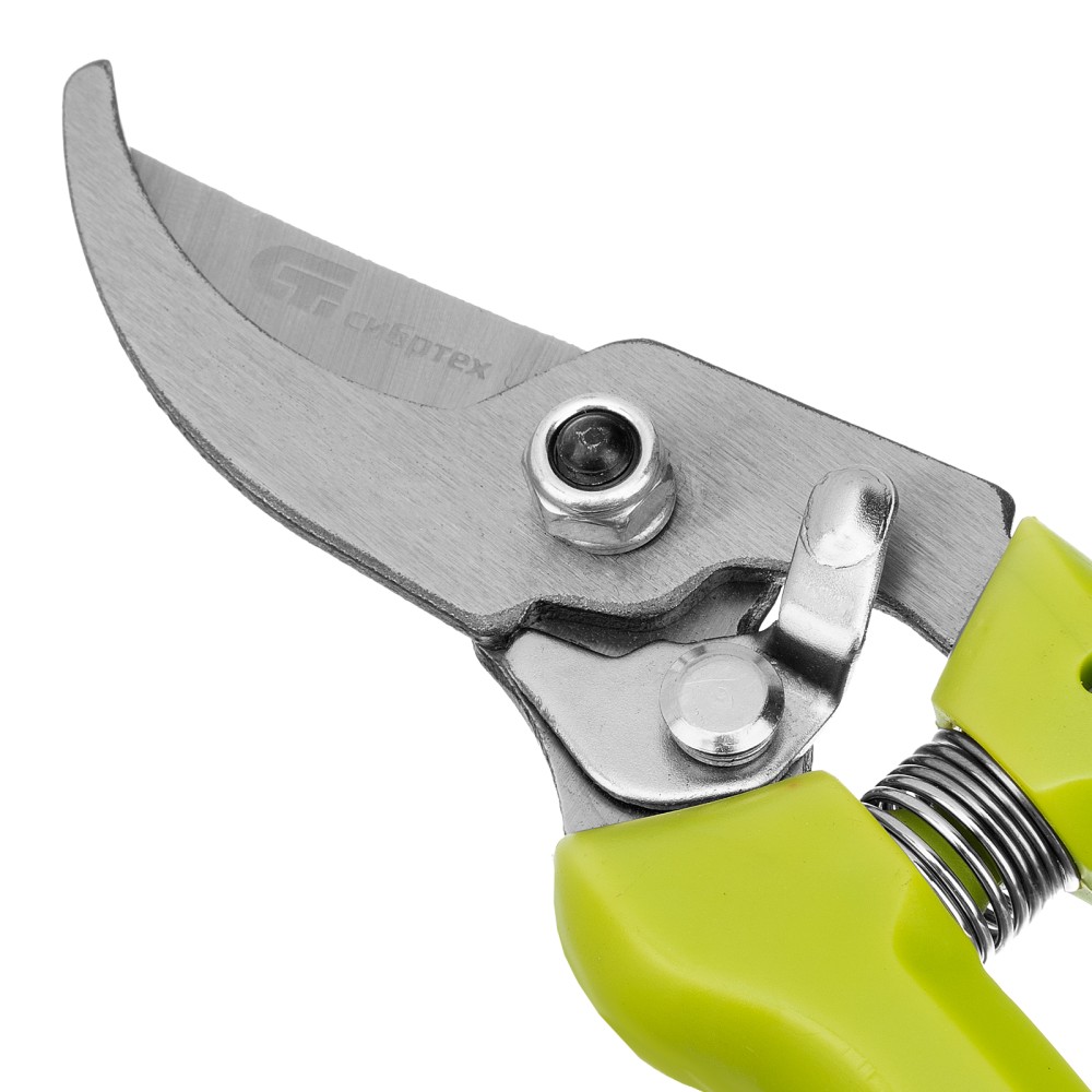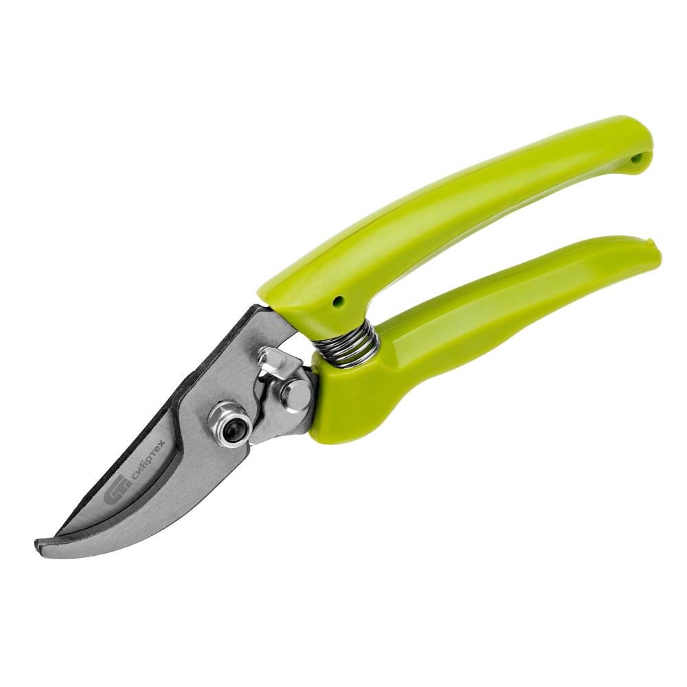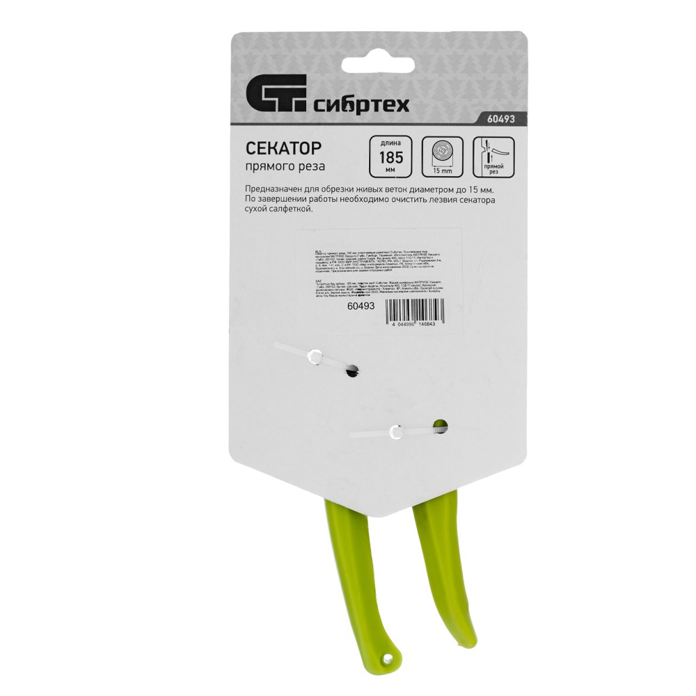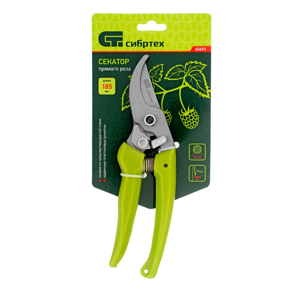 Секатор прямого реза Сибртех 60493 длиной 185 мм, с пластиковыми рукоятками, используется в саду и огороде для срезания живых веток диаметром до 15 мм. Движущиеся в параллельных плоскостях лезвия быстро и аккуратно срезают ветку, минимизируя потери сока. У секатора имеется регулировочный винт, позволяющий менять плотность примыкания лезвий.ПреимуществаПрочность и долговечность — лезвия изготовлены из среднеуглеродистой стали, полипропиленовые рукоятки устойчивы к воздействию ультрафиолета.Высокая износостойкость — режущая кромка закалена индукционным способом и имеет прецизионную заточку.Защита от разрушения — лезвия покрыты антикоррозионным маслом.Комфортная работа — эргономичные рукоятки удобно ложатся в руку.Безопасное хранение и транспортировка — фиксатор удерживает лезвия сомкнутыми и не дает им раскрыться.