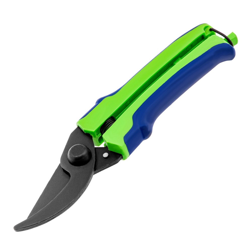 Секатор прямого реза Сибртех Горизонт 60539 длиной 220 мм, с пластиковыми рукоятками, облегчает уход за растительностью на дачном участке. Используется для срезания живых веток и стеблей толщиной до 12 мм. Лезвия, расположенные в параллельных плоскостях, производят аккуратный гладкий срез, минимизируя наносимый растению ущерб. Регулировочный винт позволяет контролировать плотность примыкания лезвий.ПреимуществаВысокий ресурс — рабочие части изготовлены из среднеуглеродистой стали, режущее лезвие прошло термическую закалку и устойчиво к истиранию.Долговечность — лезвия оксидированы для защиты от коррозии, рукоятки выполнены из полипропилена, устойчивого к воздействию ультрафиолета.Безопасное хранение и транспортировка — фиксирующая скоба удерживает рукоятки в сомкнутом положении.