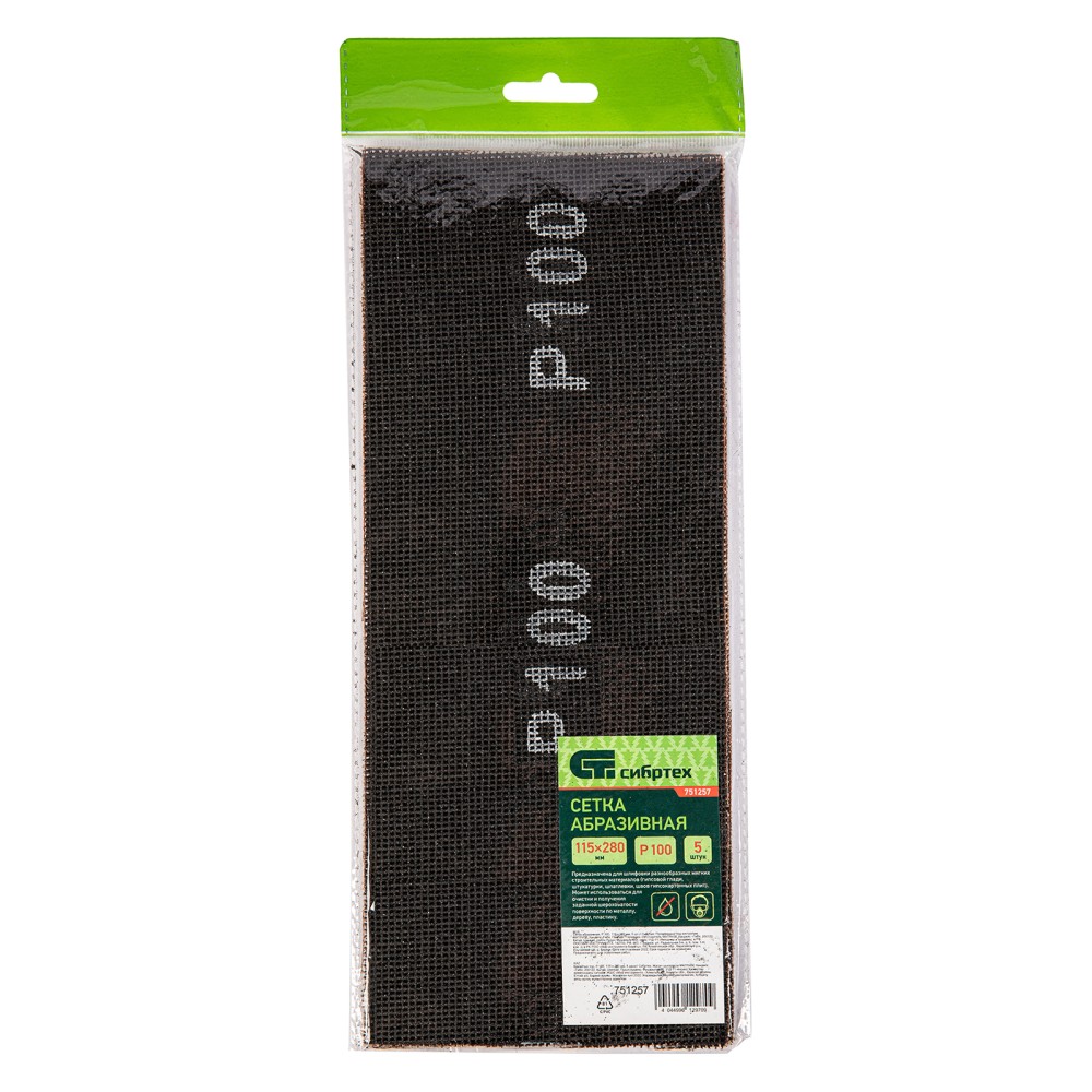 Абразивная сетка Сибртех 751257 размером 115 х 280 мм, с зернистостью P 100, 5 шт. в упаковке, используется для промежуточного шлифования шпаклеванных поверхностей и мягкой древесины. Справляется также с удалением ржавчины, заусенцев, лакокрасочных покрытий с металлических поверхностей. Благодаря основе из прочного стекловолокна выдерживает интенсивное применение. Предназначена для использования с сеткодержателем или шлифовальным бруском. ПреимуществаЭффективная работа — благодаря ячеистой структуре полотно практически не забивается продуктами шлифования.Высокий ресурс — абразив из оксида кремния устойчив к истиранию.Двустороннее нанесение абразивного материала — в случае изнашивания достаточно перевернуть сетку и продолжить работу.Простой уход — рабочее полотно можно очистить легким постукиванием.Удобная комплектация — упаковки из 5 штук хватит для выполнения большого объема работ.