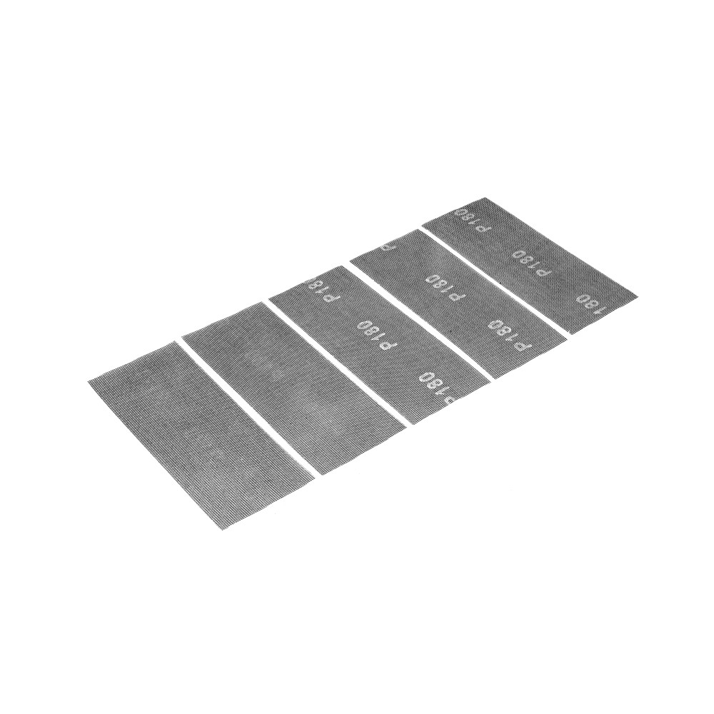 Абразивная сетка Сибртех 751327 размером 115 х 280 мм, с зернистостью P 180, 5 шт. в упаковке, предназначена для чистовой обработки шпаклеванных, деревянных и металлических поверхностей. Среднезернистый абразив P 180 снимает тонкий слой материала и позволяет подготовить поверхности к окрашиванию или поклейке обоев, удалить лак, краску, заусенцы и ржавчину. Полотно из прочного гибкого стекловолокна отличается износостойкостью. Сетка крепится на брусок или сеткодержатель. ПреимуществаЭффективная работа — благодаря ячеистой структуре полотно практически не забивается продуктами шлифования.Высокий ресурс — абразив из оксида кремния устойчив к истиранию.Двустороннее нанесение абразивного материала — в случае изнашивания достаточно перевернуть сетку и продолжить работу.Простой уход — рабочее полотно можно очистить легким постукиванием.Удобная комплектация — упаковки из 5 штук хватит для выполнения большого объема работ.