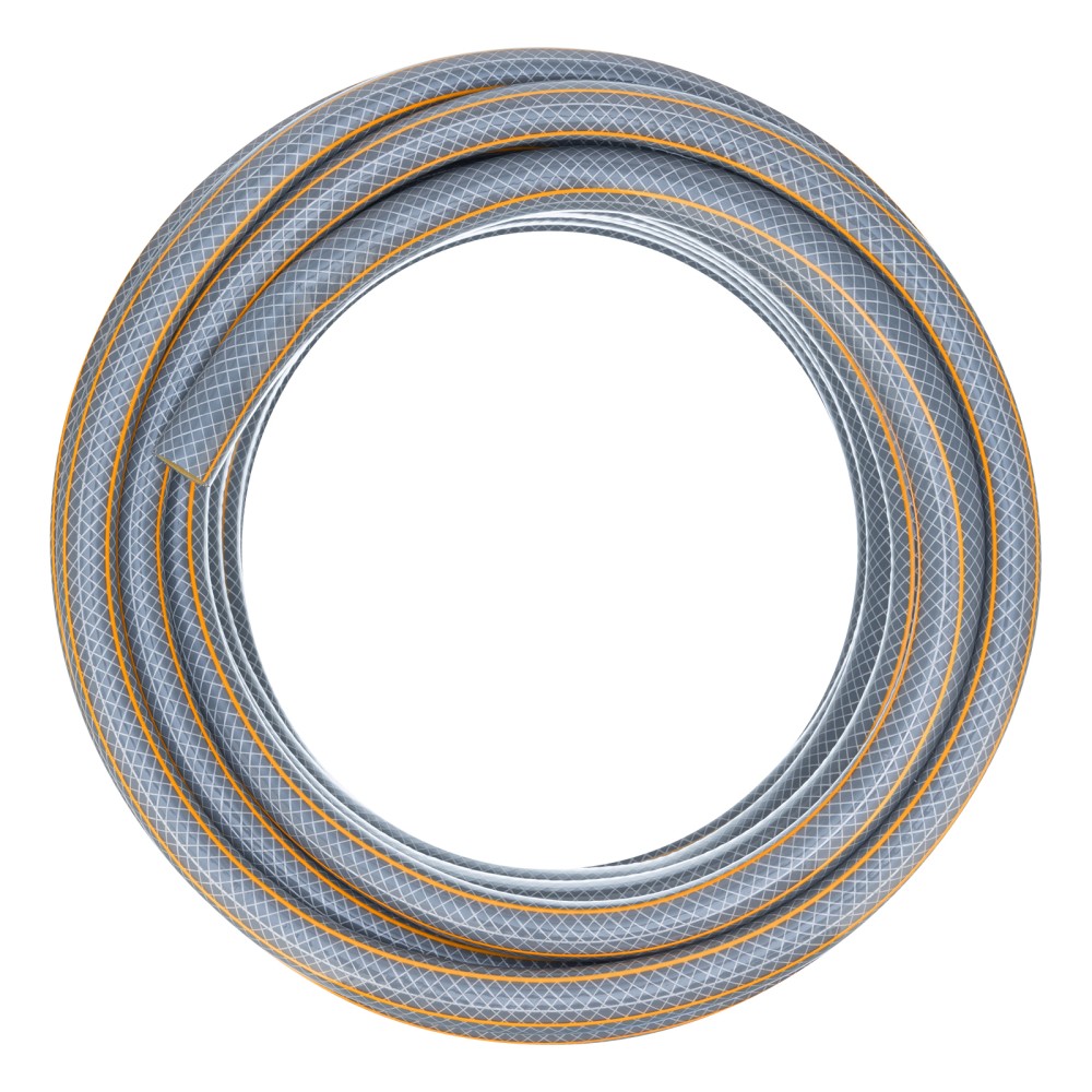 4-слойный армированный поливочный шланг Palisad LUXE «Professional» 67464 длиной 15 м и диаметром 3/4" используется для организации системы полива на даче, в саду, скверах и небольших парках. С его помощью удобно проводить ежедневное орошение газонов и растений. Гибкий напорный шланг оптимально подходит для интенсивной эксплуатации.ПреимуществаВысокий ресурс — шланг выполнен из поливинилхлорида (ПВХ) наивысшего качества и армирован.Максимально прочный армирующий слой — полиэстерная нить с инновационным плетением обеспечивает стойкость к высоким нагрузкам, перегибам и скручиванию.Защита от внешних воздействий — специальное покрытие предотвращает разрушение шланга от перепадов температур и УФ-лучей.Повышенная прочность — за счет толщины стенок 2,4 мм шланг выдерживает давление до 35 бар.Универсальность — изделие совместимо со всеми поливочными системами Palisad и Palisad LUXE.