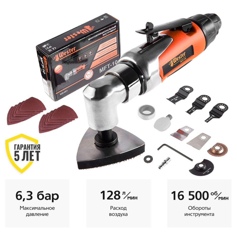 - WESTER MFT-10 - пневматический многофункциональный инструмент для распиливания, шлифовки и разрезания древесины, пластика и металла.