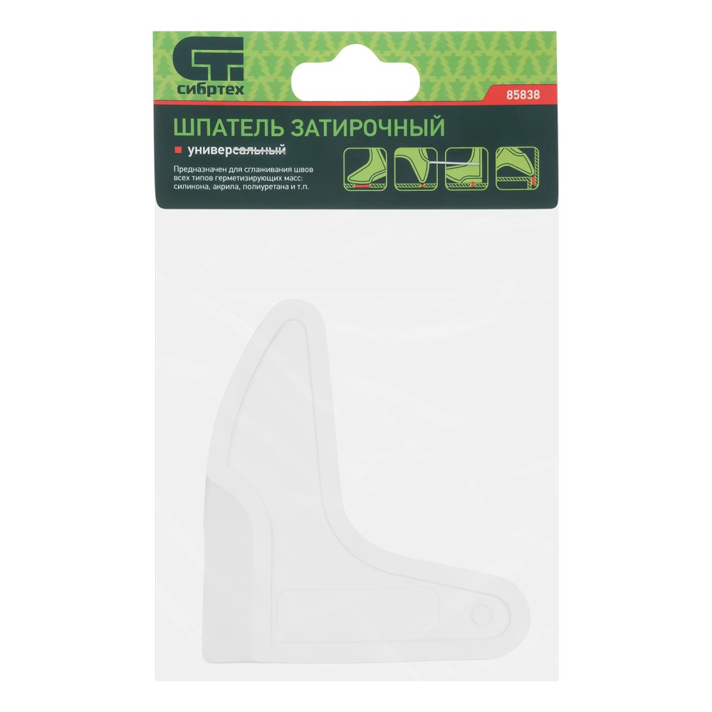 Универсальный затирочный шпатель Сибртех 85838 предназначен для сглаживания швов. Используется при проведении отделочных работ с силиконовыми, акриловыми, полиуретановыми и другими герметизирующими материалами. Шпатель не царапает поверхность и подходит для работы с облицовочными материалами.ПреимуществаУниверсальность — шпатель позволяет формировать швы любого типа.Простой уход — изделие из поливинилхлорида легко очищается от герметика.Удобная форма — шпатель надежно ложится в руке и не выскальзывает из ладони.