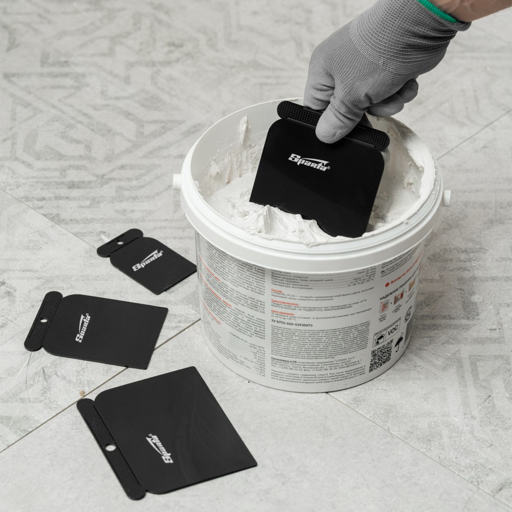 Набор из 4 японских пластмассовых шпателей Sparta 860045 позволяет эффективно обрабатывать криволинейные, рельефные поверхности и труднодоступные участки, проводить финишную обработку. Шпатели не оставляют царапин, что обеспечивает высокое качество работ.ПреимуществаШирокие возможности — набор включает инструменты размером 50-75-100-120 мм для работы с различными поверхностями.Надежность — шпатели из качественной пластмассы не деформируются во время работы.Эргономичность — рукоятки с рельефным дизайном обеспечивают надежный хват.