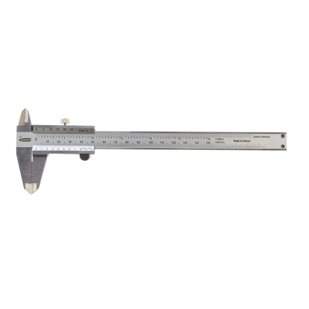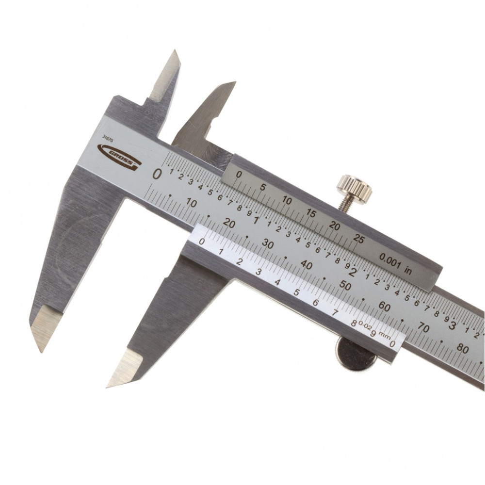 Штангенциркуль Gross 31670 из нержавеющей стали, с глубиномером, предназначен для измерения внутренних и наружных размеров деталей и заготовок в диапазоне 0-150 мм. Значение отсчета по нониусу составляет 0,02 мм. Погрешность находится в пределах ±0,02 мм при измерении размеров до 100 мм, и ±0,03 мм — свыше 100 мм. Измерительный инструмент имеет губки двух видов для облегчения замеров внутри и снаружи измеряемых предметов. Благодаря линейке глубиномера может использоваться для определения глубины отверстий. Штангенциркуль будет полезен на производственном предприятии, в слесарной и столярной мастерской, автосервисе, а также пригодится в быту.
