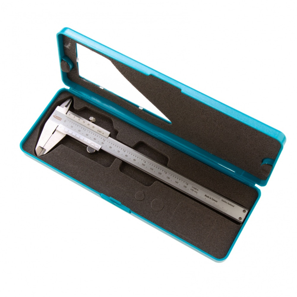 - Штангенциркуль выполнен из нержавеющей стали, прочной и устойчивой к коррозии, что обеспечивает ему длительный срок службы.