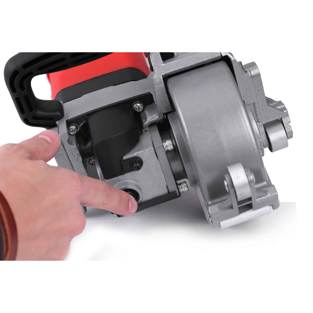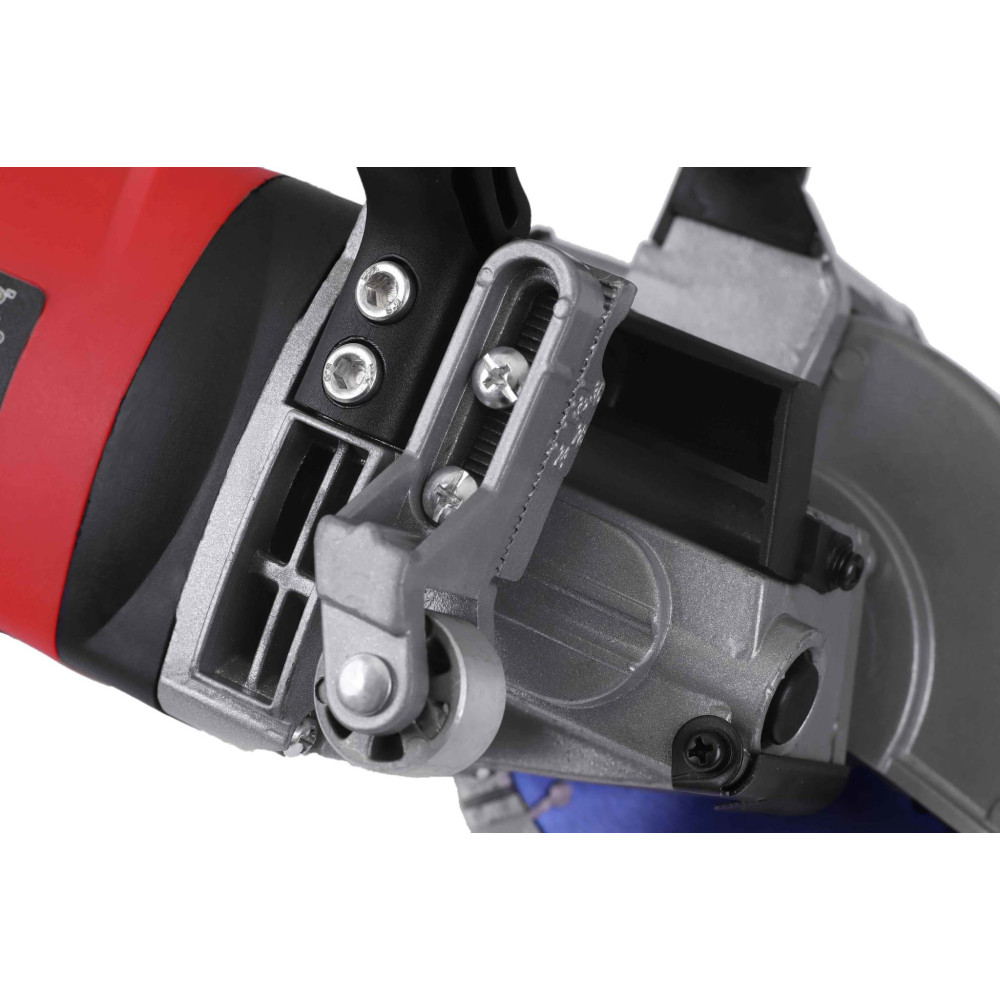 К особенностям штробореза MESSER T1556 можно отнести то, что он не имеет "слепой" зоны при резке штробы в углах помещения. Это достигается благодаря конструктивной особенности защитного кожуха. Когда штроборез упирается в перпендикулярную стену, кожух открывается и позволяет продолжить резку штробы глубже в угол.