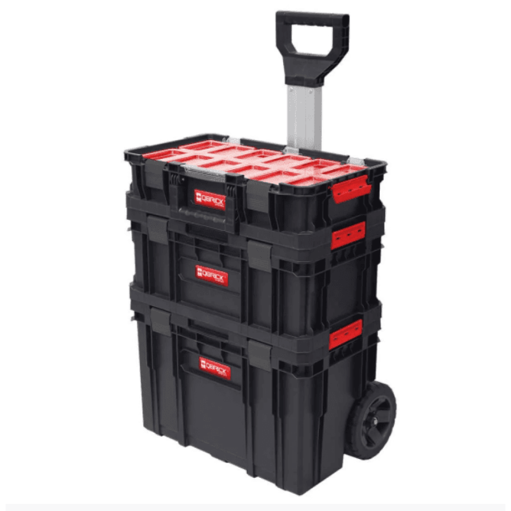 Модульный набор инструментов, представляющий собой мобильную базу для создания персонализированных ДВУХ наборов. Прочная телескопическая ручка, металлическая ось, большие колеса с резиновым покрытием гарантируют долговечность и отличную маневренность.