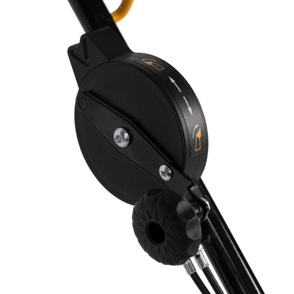 - Высокая надежность и плавность хода — удаленное управление желобом осуществляется с помощью тросового механизма, наклон дефлектора регулируется вручную.