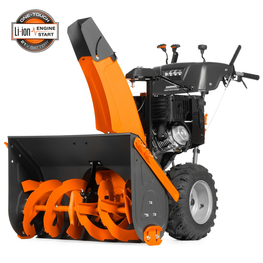 - Яркая LED фара обеспечивает освещение рабочей зоны, помогая работать в темное время суток, и делает работающий снегоуборщик заметным для окружающий, ограждая от попадания под выбрасываемый снег.