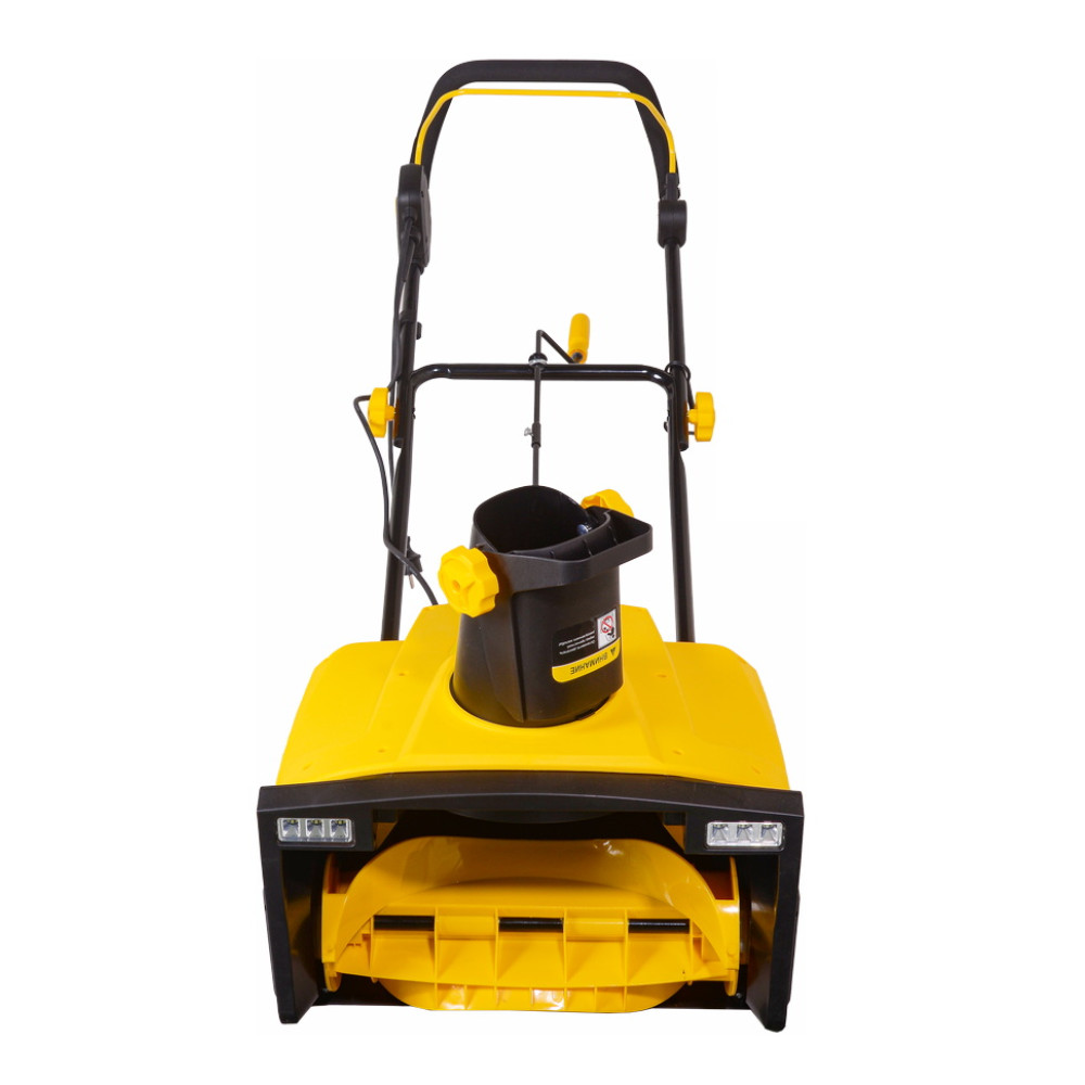 - Снегоуборщик электрический оснащен двумя фарами для удобства работы в темноте.
