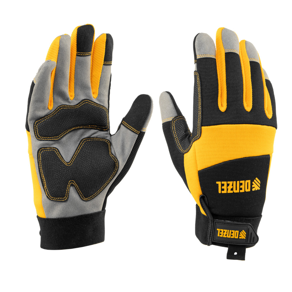 Универсальные усиленные перчатки Denzel 67990 размера 9 используются для работы со слесарным инструментом. Надежно защищают кожу рук от царапин и мозолей. Пригодятся частному мастеру и профессионалу в мастерской, дома или в гараже.