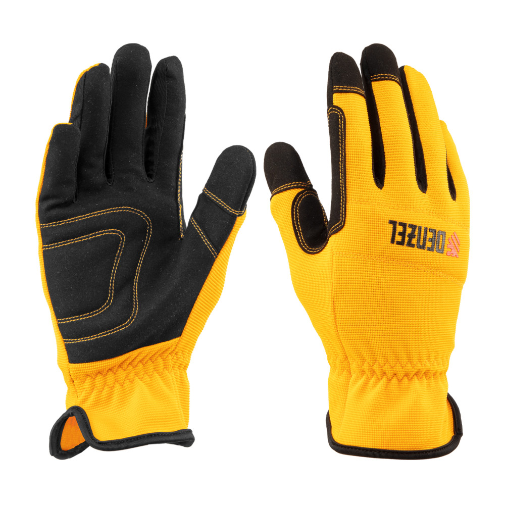 Универсальные перчатки Denzel 67996 размера 9 используются для защиты кожи рук от повреждений во время работы с ручным инструментом. Анатомический крой обеспечивает плотную посадку и свободные движения пальцев. Перчатки будут полезны в слесарной и столярной мастерской, дома или в гараже.
