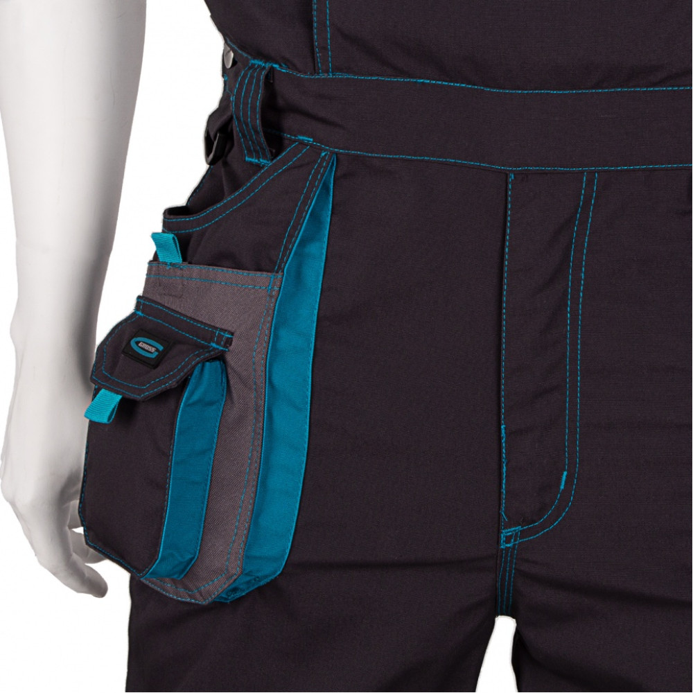 Полукомбинезон Gross 90353 размера L рассчитан на рост 179-185 см и предназначен для защиты рабочего от механических повреждений, ветра и пыли. Может применяться в отапливаемых помещениях или на улице в теплое время года. Изготовлен из смесовой ткани с 35%-м содержанием хлопка, которая не препятствует воздухообмену, поэтому в полукомбинезоне комфортно работать. На 65% ткань состоит из полиэстера, что обеспечивает износостойкость спецодежды. В 14 карманах можно разместить инструменты и необходимые мелочи. Полукомбинезон необходим строителям, электрикам, садовникам, сотрудникам автосервисов, а также рабочим других специальностей.