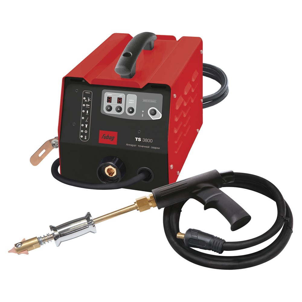 Аппарат контактной сварки TS 3800 для устранения вмятин с поверхности стальных поверхностей кузова. Аппарат контактной сварки Fubag TS 3800 прост в использовании за счет микропроцессорного управления и наличия пистолета с автоматическим разрядом и наглядной панели управления.