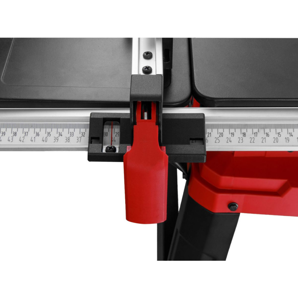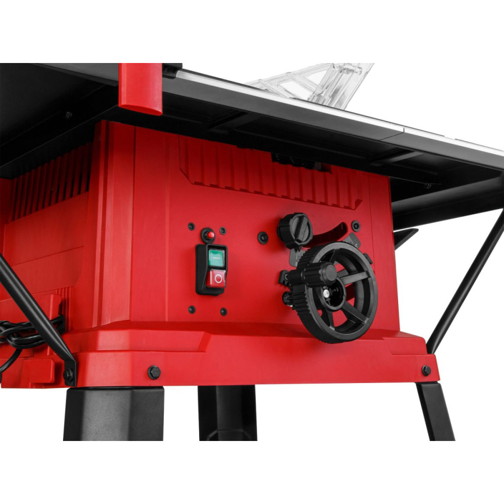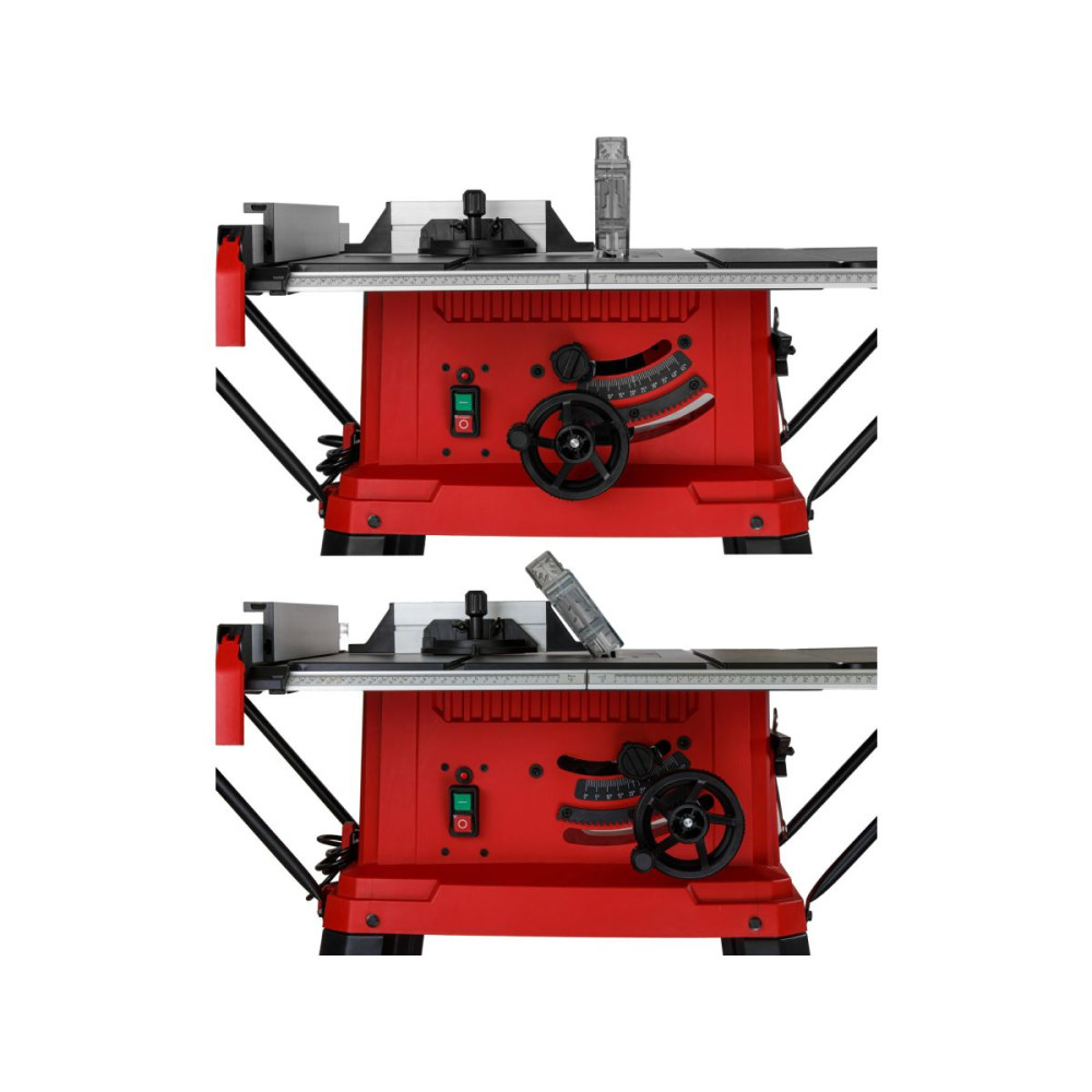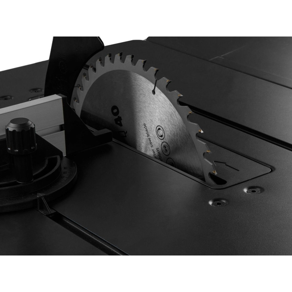 Модель предназначена для продольного, поперечного и наклонного реза деревянных заготовок. Эффективная работа станка обеспечивается мощным двигателем 2000 Вт. Безопасная работа пользователя обеспечивается благодаря защитному кожуху. Режущим элементом выступает пильный TCT диск с 40 зубьями. Для создания диагональных распилов в комплекте с изделием предназначен угловой упор (также в комплекте есть параллельный). На станке присутствует возможность изменения угла пропила от 45 ? до 90?, а также изменять его высоту от 0 до 85 мм. Есть возможность расширения рабочей зоны путем установки дополнительных опор, что позволит работать с заготовками еще больших размеров. Модель обладает дополнительной съемной станиной для комфортной работы без использования вспомогательных средств. Станок обладает плавным пуском.