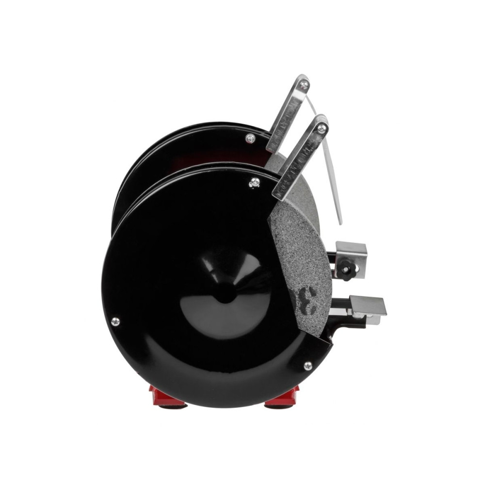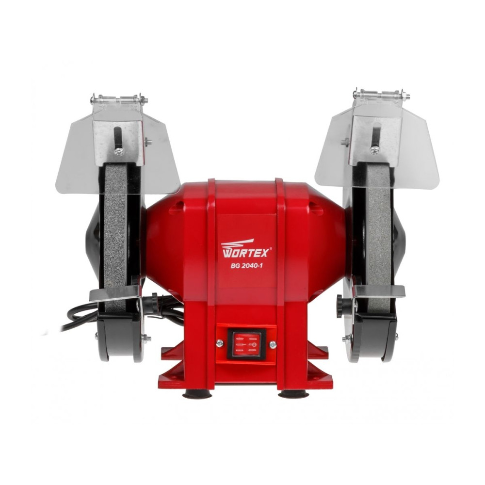 Модель BG 2040-1 покрыта термостойкой краской, оснащена защитными щитками и металлическими кожухами для безопасного использования. Также, станок имеет устойчивое основание и пылезащищенный выключатель, а два установленных круга имеют разную зернистость (мелкую и крупную). Внимание: внутри заточного круга установлен переходник с 12 мм на 16 мм. Перед установкой переходника на 32 мм сначала наденьте на вал указанный выше переходник!