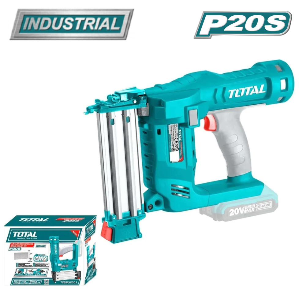 - Индустриальный финишный гвоздезабивной пистолет, работающий от аккумулятора системы TOTAL P20S.