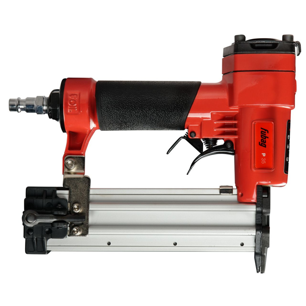 Новый шпилькозабивной пистолет до 35 мм! Для работы с еще более толстым деревянным покрытием. Шпильки не имеют шляпки, что делает покрытие практически незаметным. Преимущества: - Шпильки 35 мм позволяют работать по более толстому материалу - Позволяет крепить толстые деревянные элементы, напольные покрытия, изоляционные материалы и т.д. - Предохранительный стопор защищает от случайного пуска и делает работу максимально безопасной - Шероховатое нескользящее покрытие обеспечивает удобный хват, инструмент надежно лежит в руке.
