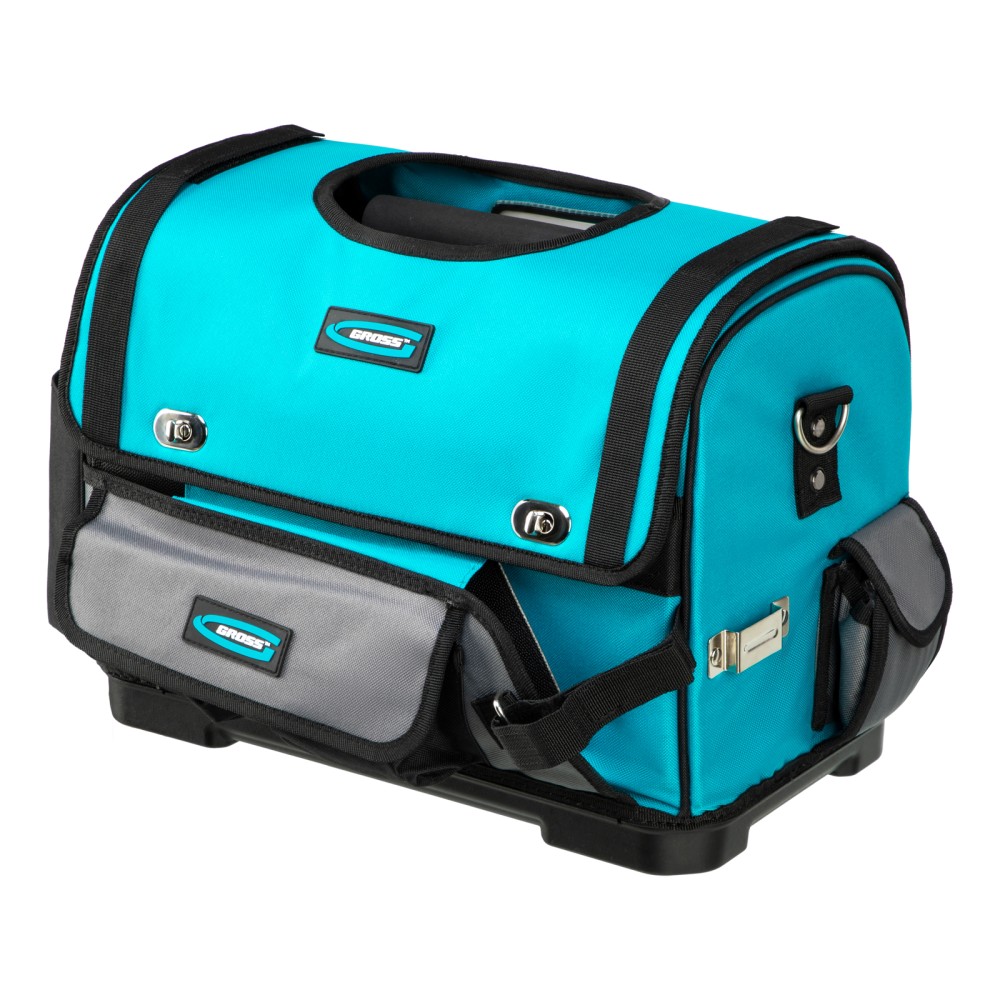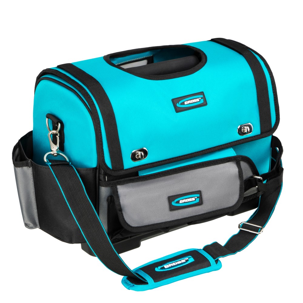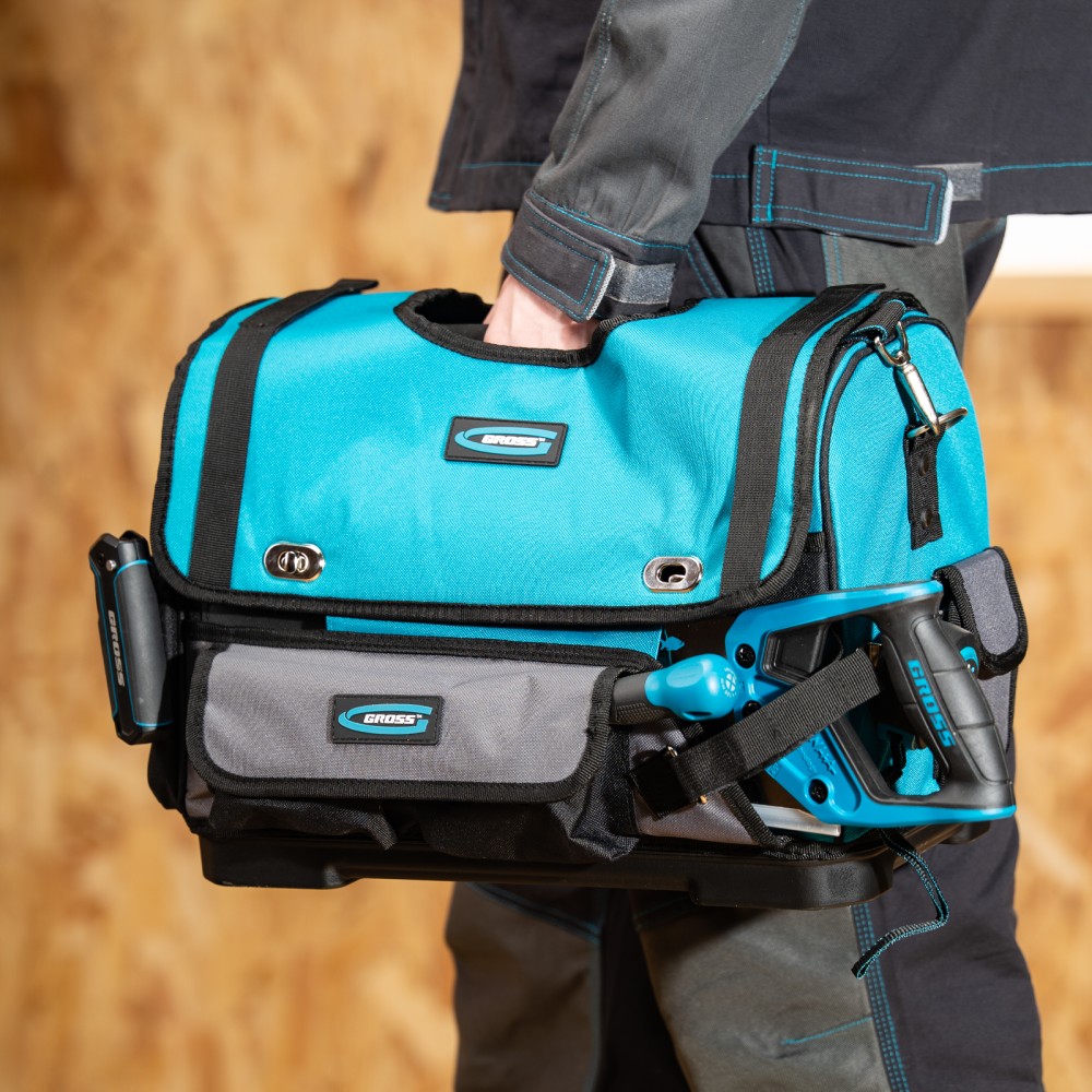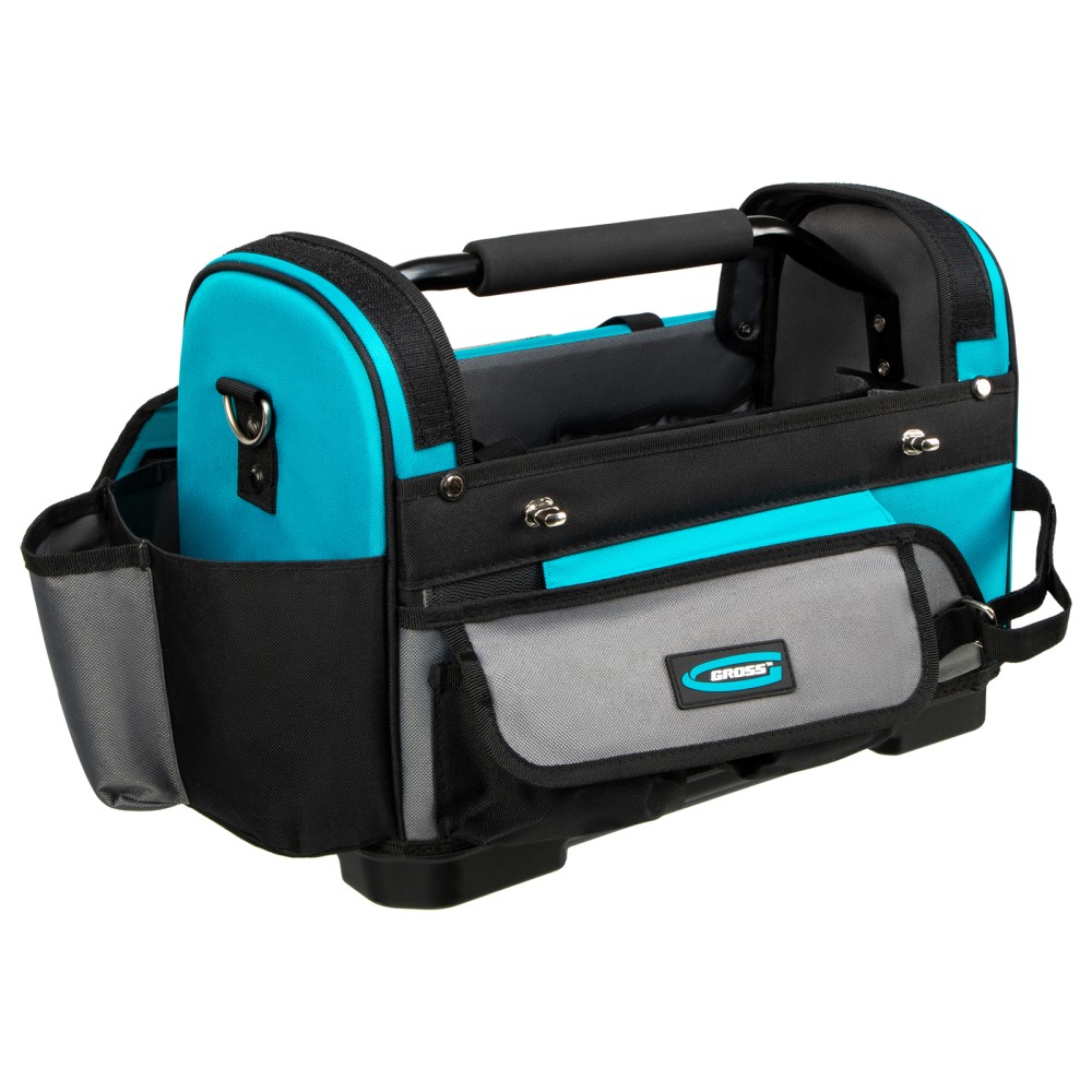 Переноска Gross 90274 размером 400 х 225 х 300 мм с пластиковым дном и наплечным ремнем используется для хранения и перемещения ручного и электроинструмента. Сумка с прочным дном и надежной ручкой выдерживает значительный вес. Пригодится дома, в гараже и поездке.ПреимуществаДолговечность — переноска изготовлена из прочного полиэстера 600 D, устойчивого к износу.30 внешних и внутренних карманов — можно разместить необходимые инструменты, оснастку и расходные материалы.Дополнительные возможности — в переноске предусмотрен отдельный карман для ножовки, а также зацеп для рулетки.Удобная транспортировка — на ручке имеется мягкая накладка, регулируемый ремень снабжен широкой накладкой.