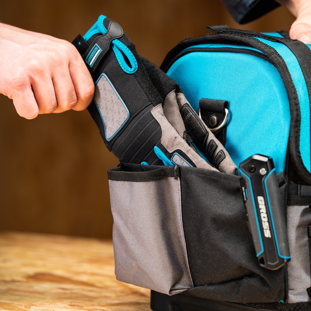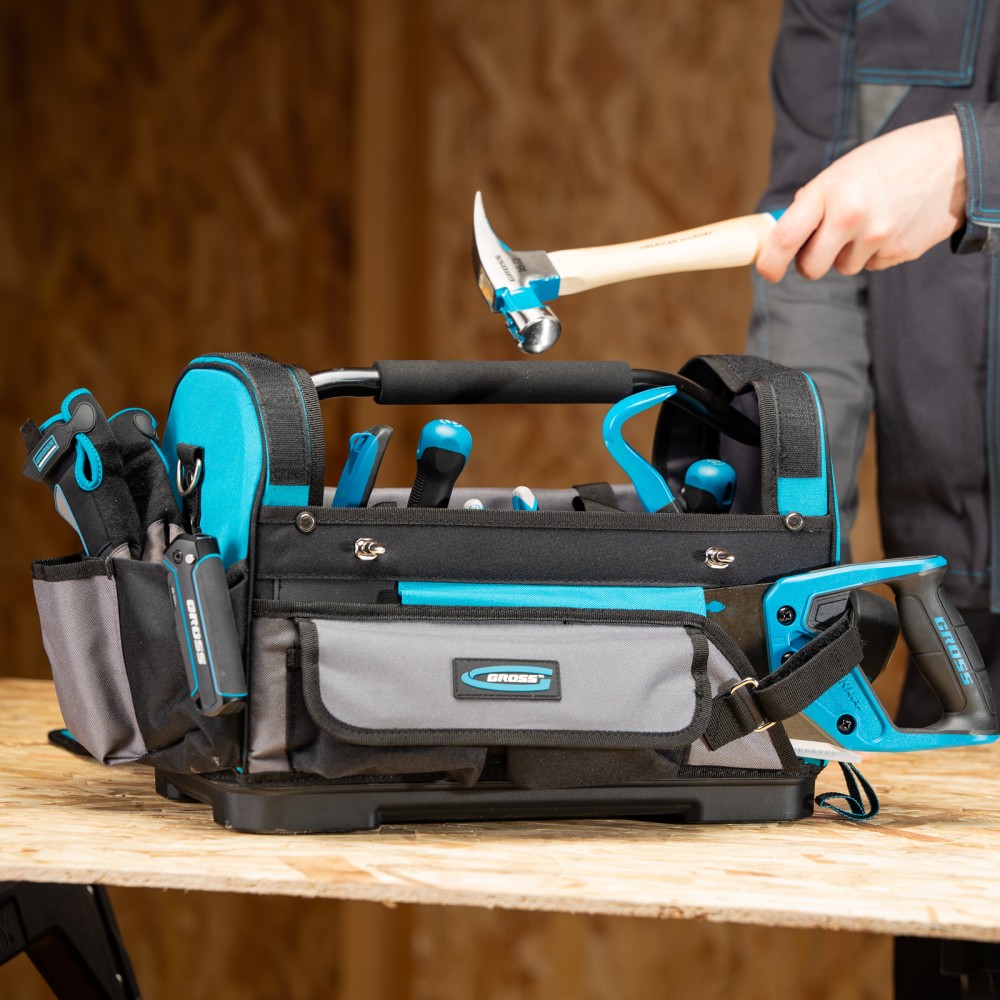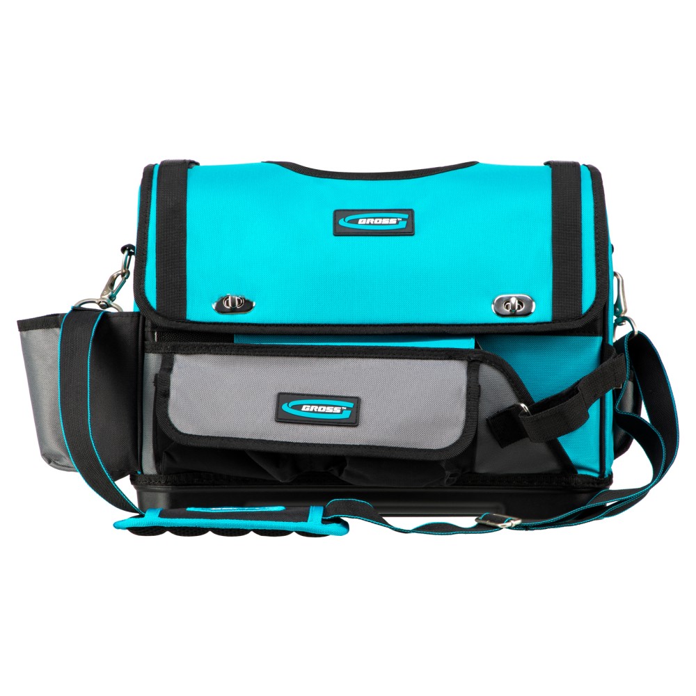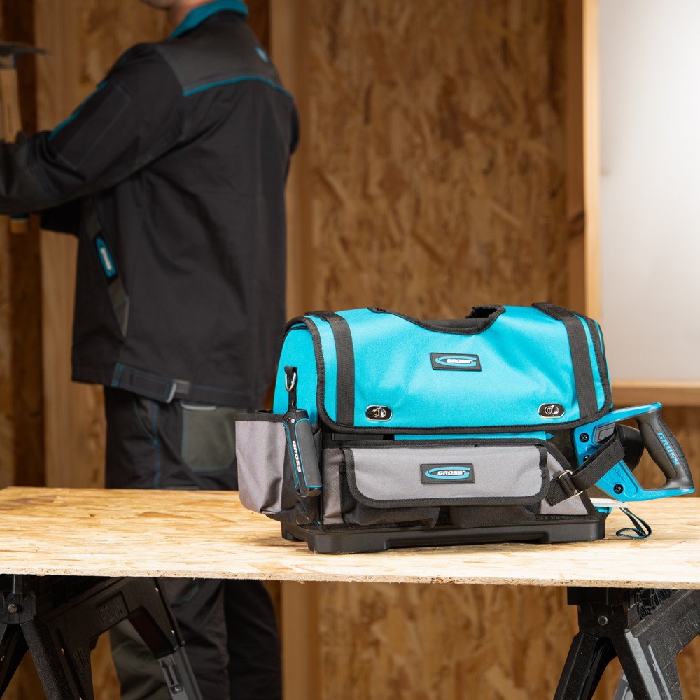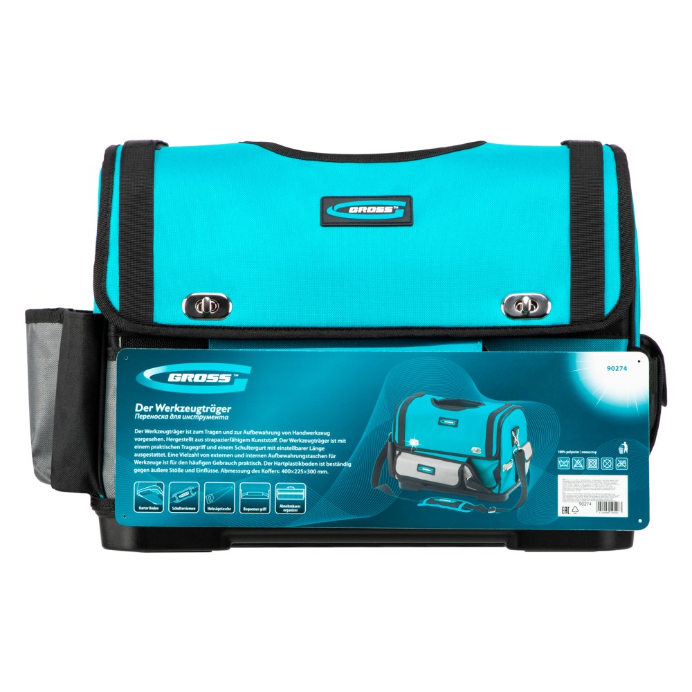 Переноска Gross 90274 размером 400 х 225 х 300 мм с пластиковым дном и наплечным ремнем используется для хранения и перемещения ручного и электроинструмента. Сумка с прочным дном и надежной ручкой выдерживает значительный вес. Пригодится дома, в гараже и поездке.ПреимуществаДолговечность — переноска изготовлена из прочного полиэстера 600 D, устойчивого к износу.30 внешних и внутренних карманов — можно разместить необходимые инструменты, оснастку и расходные материалы.Дополнительные возможности — в переноске предусмотрен отдельный карман для ножовки, а также зацеп для рулетки.Удобная транспортировка — на ручке имеется мягкая накладка, регулируемый ремень снабжен широкой накладкой.