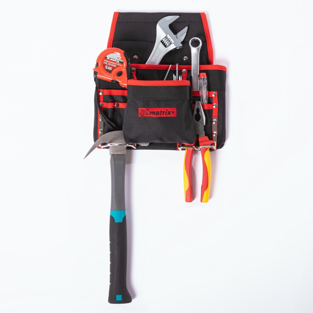 Поясной подсумок Matrix 90242 с 8 карманами и держателями для молотка и клещей используется для переноски инструментов. Крепится на ремень и позволяет иметь под рукой все необходимое, что особенно важно во время работы на высоте. Будет полезен для проведения монтажных, ремонтных и отделочных работ.ПреимуществаВысокая износостойкость — подсумок изготовлен из плотного синтетического материала.Функциональность — в 8 карманах разного размера можно разместить отвертки, шарнирно-губцевый и другой инструмент, а также детали и крепеж.Быстрый доступ к молотку и клещам — металлические держатели для них закреплены снаружи подсумка.