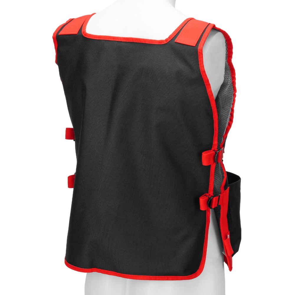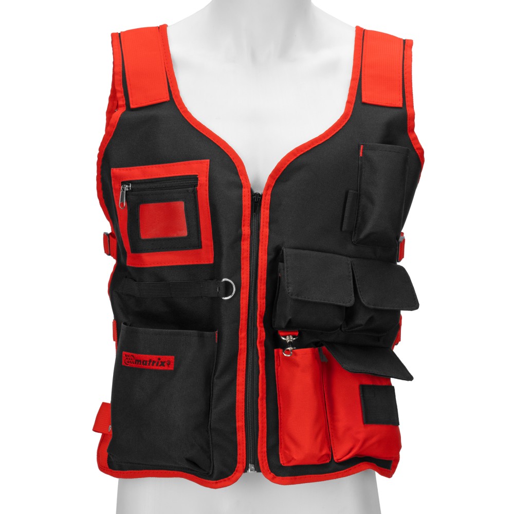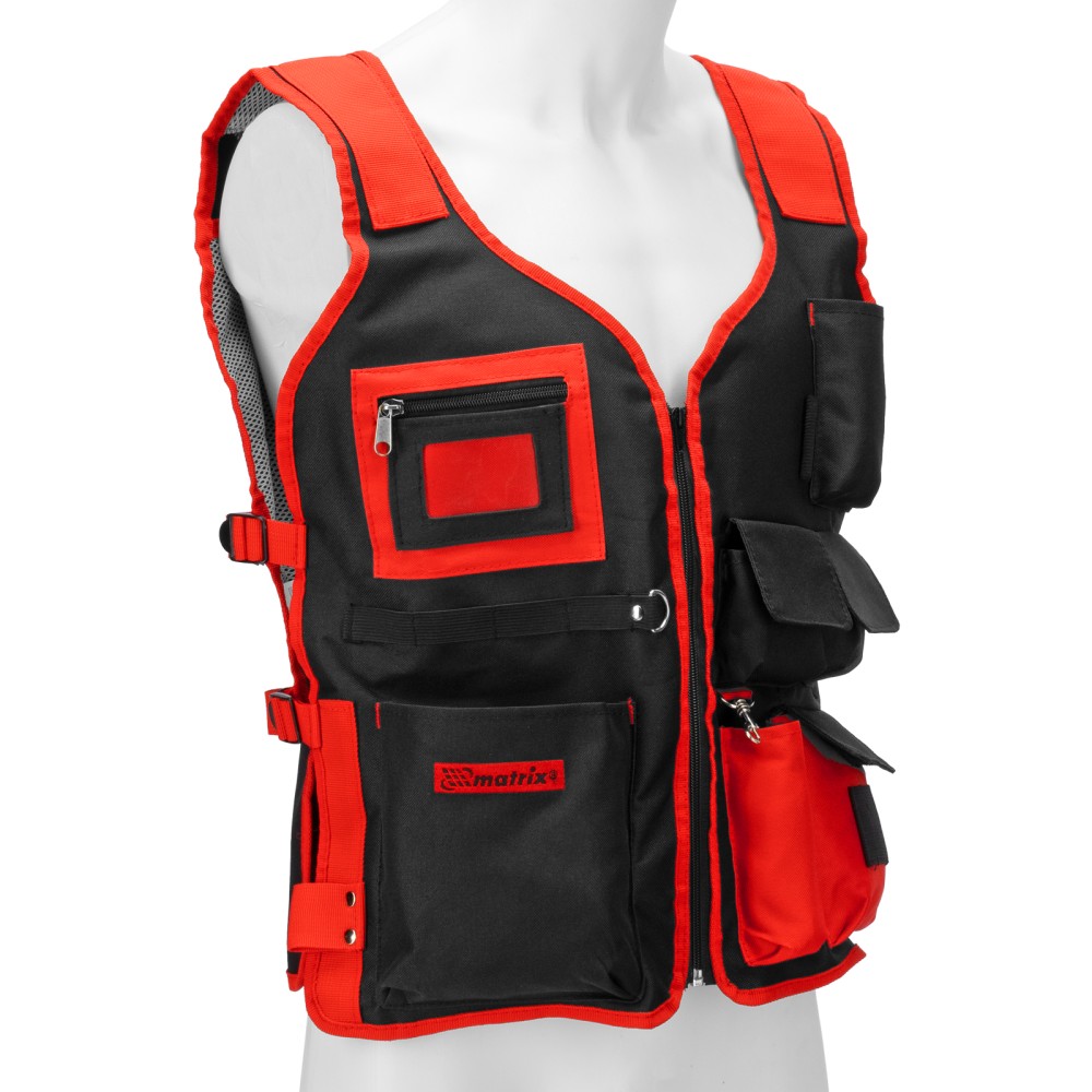 Жилет Matrix 90246 размером 510 х 600 мм предназначен для размещения инструментов. Позволяет освободить руки, особенно удобен для работы на больших объектах и на высоте. Жилет пригодится профессиональному строителю, слесарю, монтажнику, а также частному мастеру.ПреимуществаДолговечность — жилет изготовлен из прочного полиэстера, устойчивого к перепадам температур, воздействию осадков и химических веществ.Многофункциональность — в 7 карманах разного размера можно разместить инструменты, детали, карандаши и другие предметы, прозрачный нагрудный карман удобен для хранения пропуска.Универсальность — боковые застежки позволяют регулировать размер изделия.Комфортное использование — сетчатая вставка предотвращает прилипание жилета к спине и позволяет коже дышать.